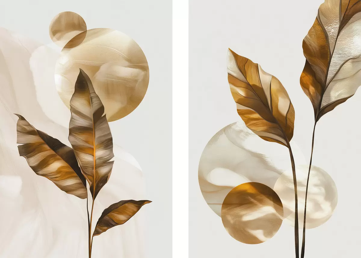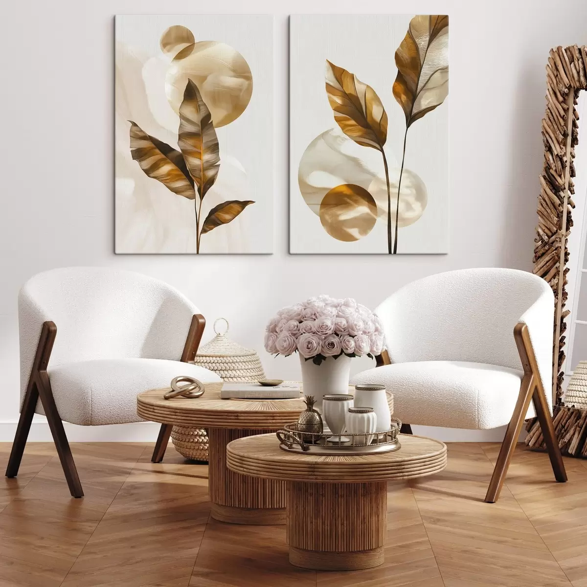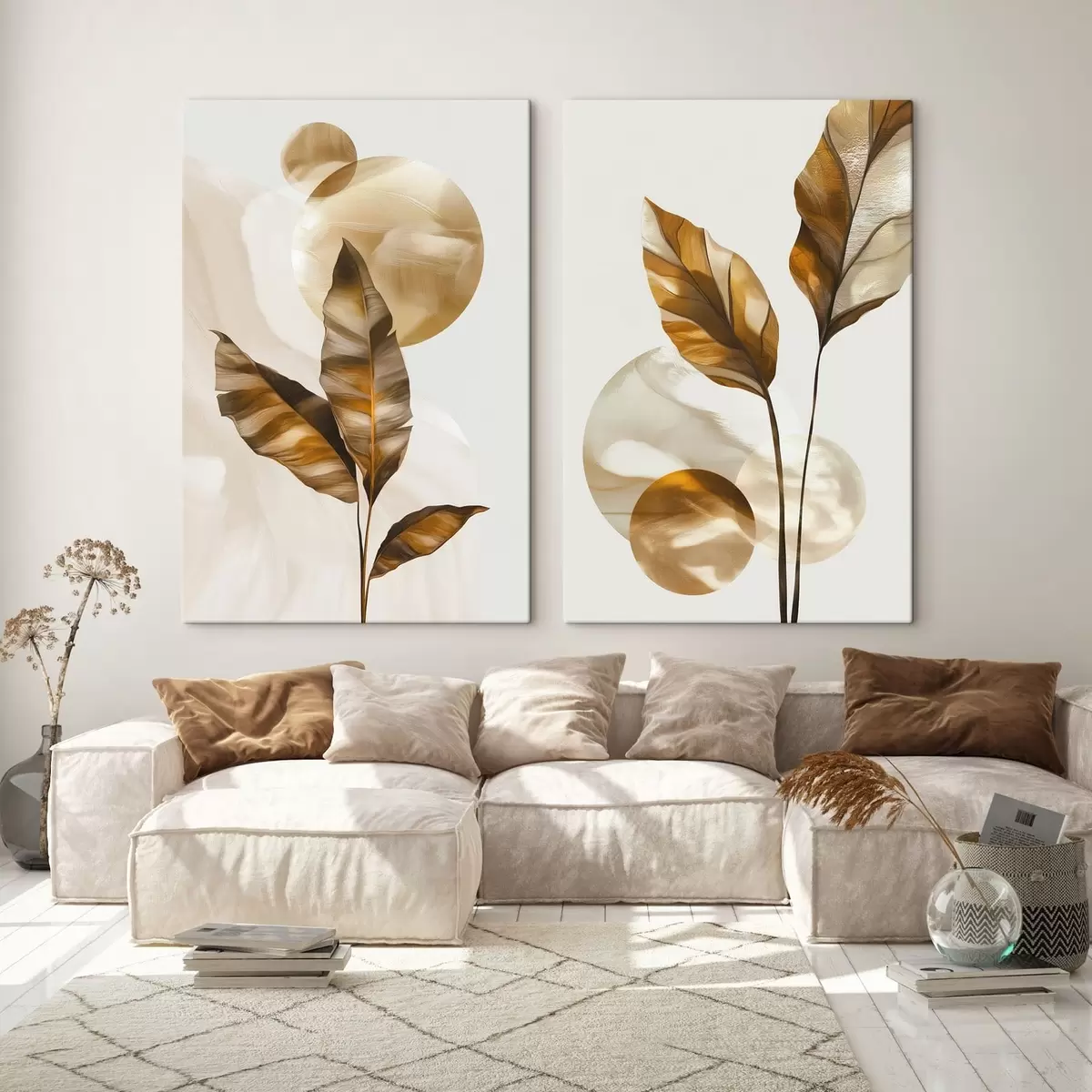 Pictură pe pânză O compoziție abstractă din frunze și cercuri Nr m30254