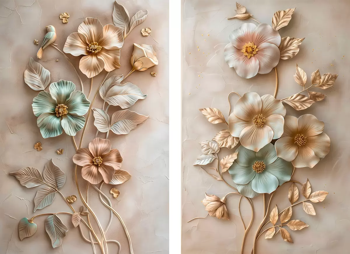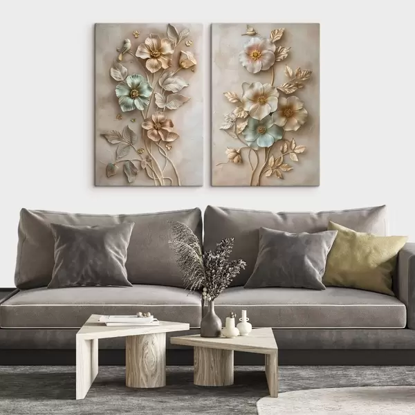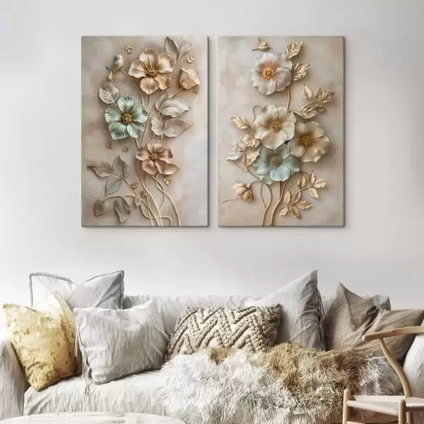 Pictură pe pânză un aranjament decorativ delicat din flori și frunze Nr m30260