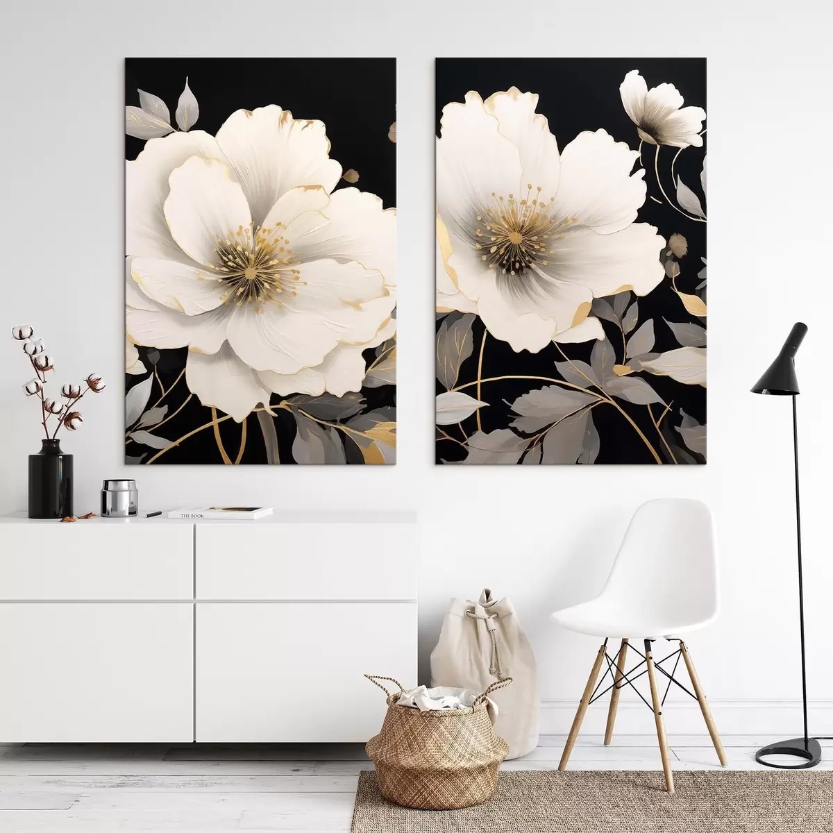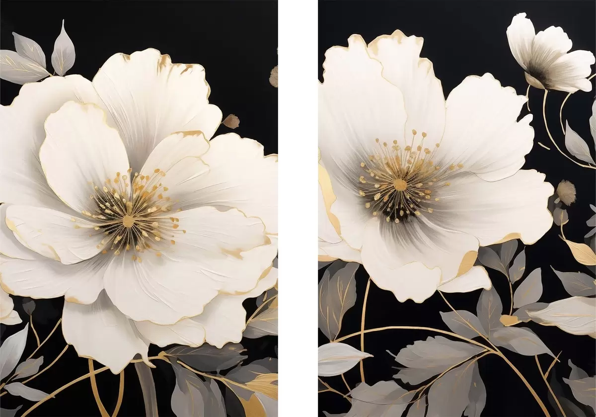 Pictură pe pânză flori albe pe fond negru Nr m30280
