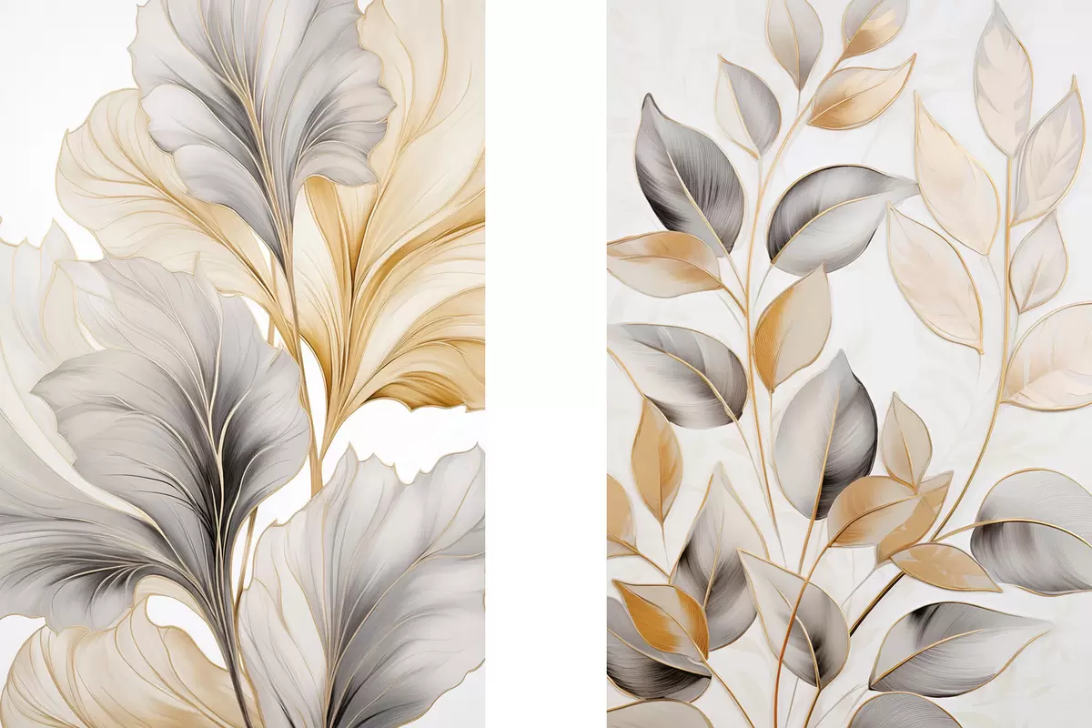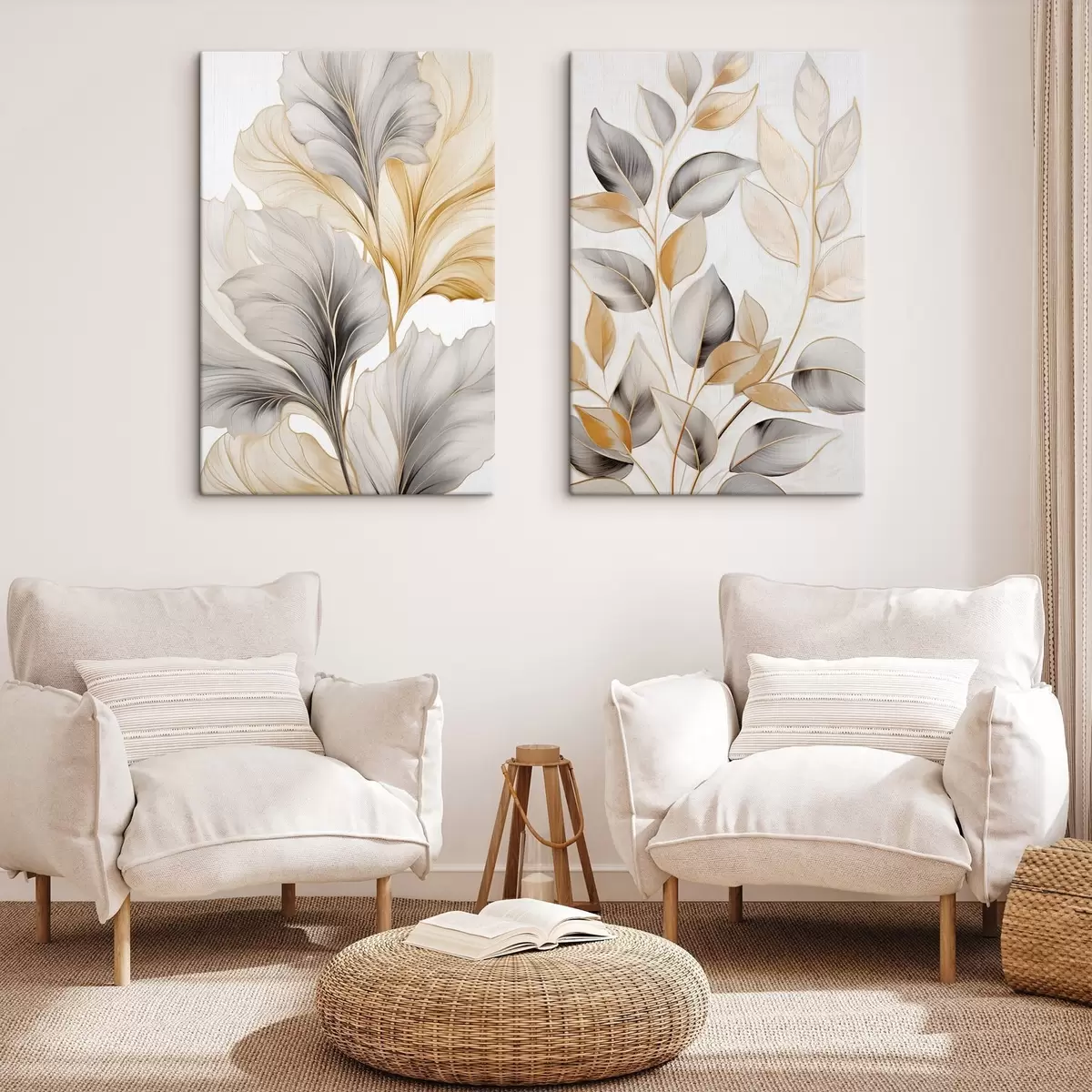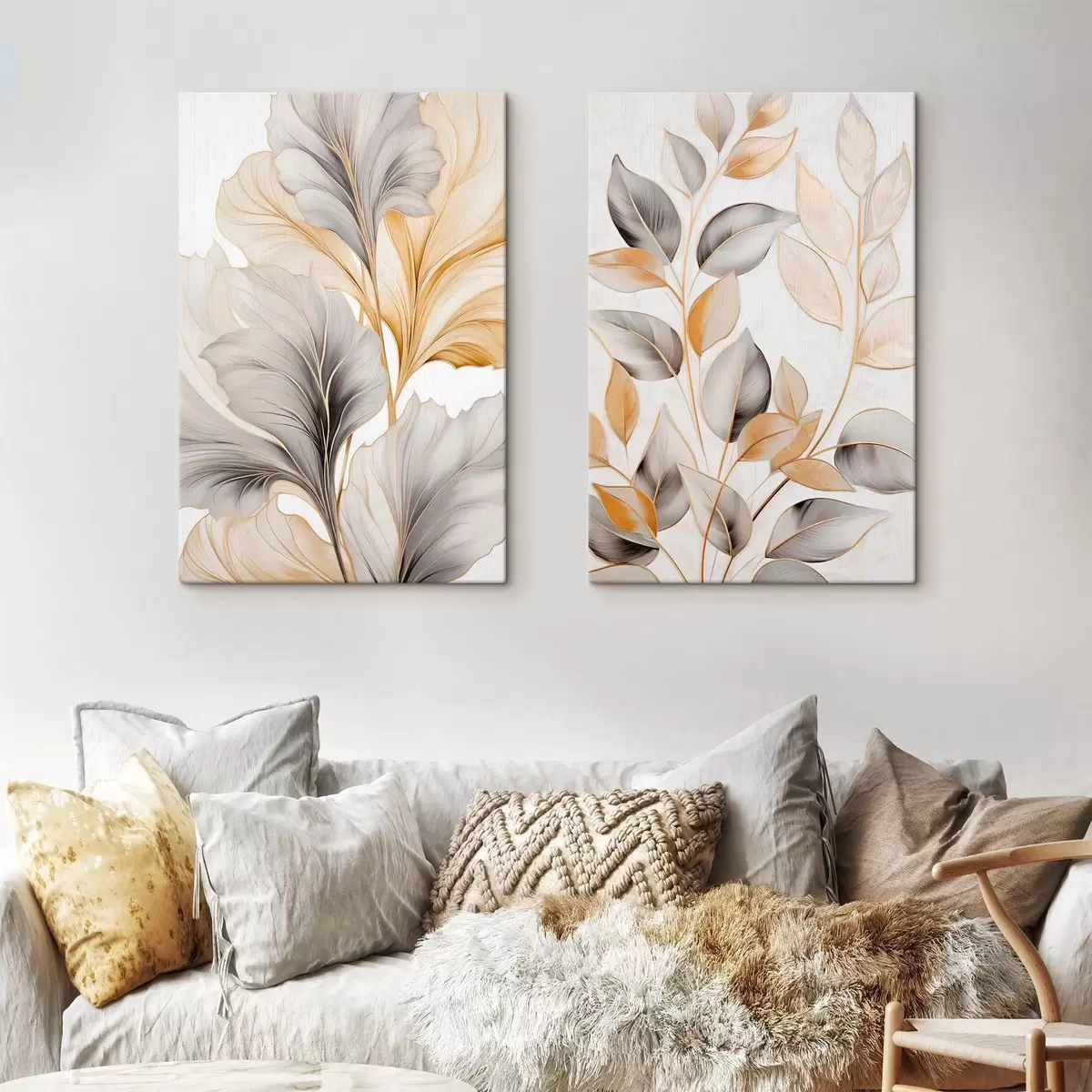 Pictură pe pânză Frunze mari, translucide, în nuanțe de gri și galben Nr m30323