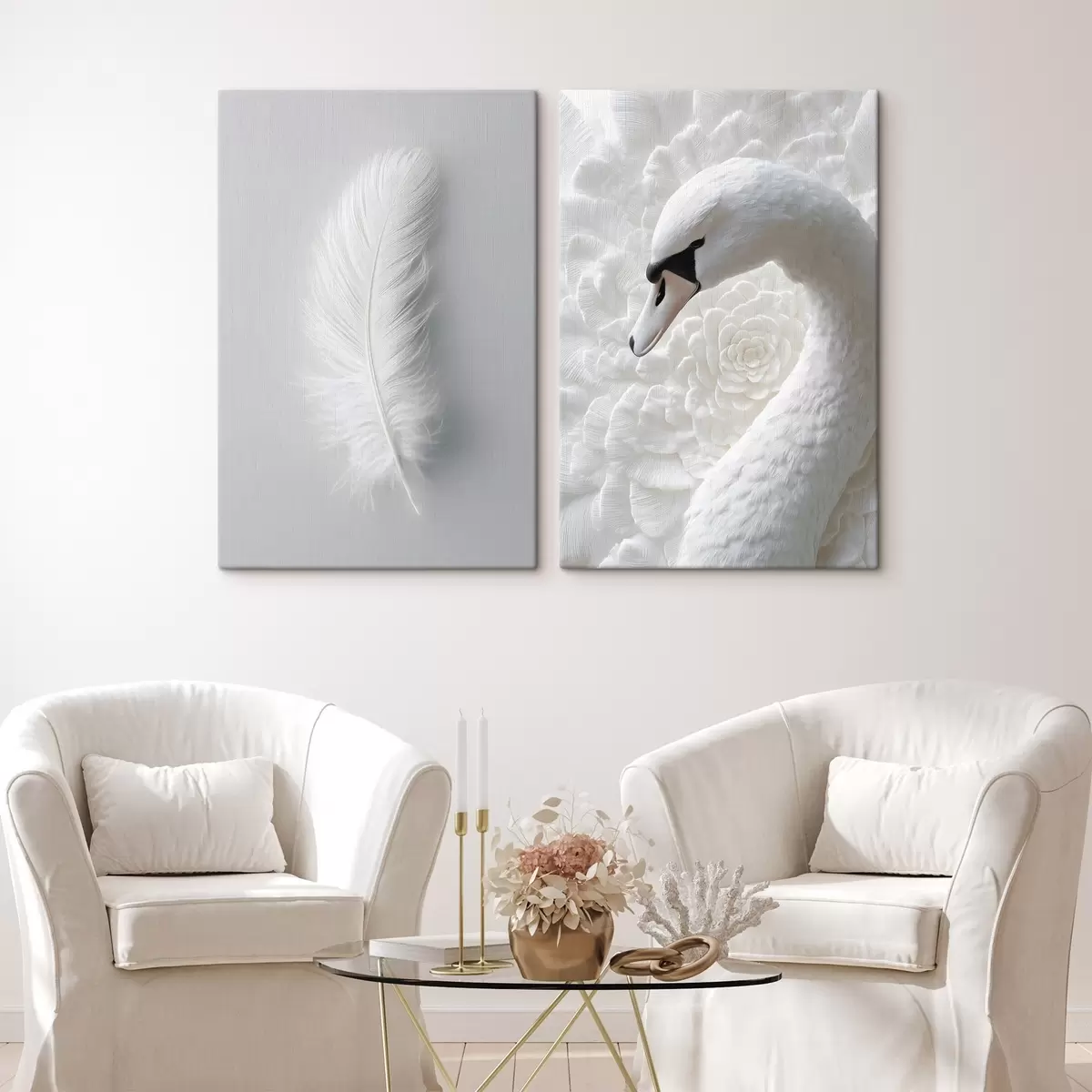 Pictură pe pânză o pană și un lebădă Nr m30331