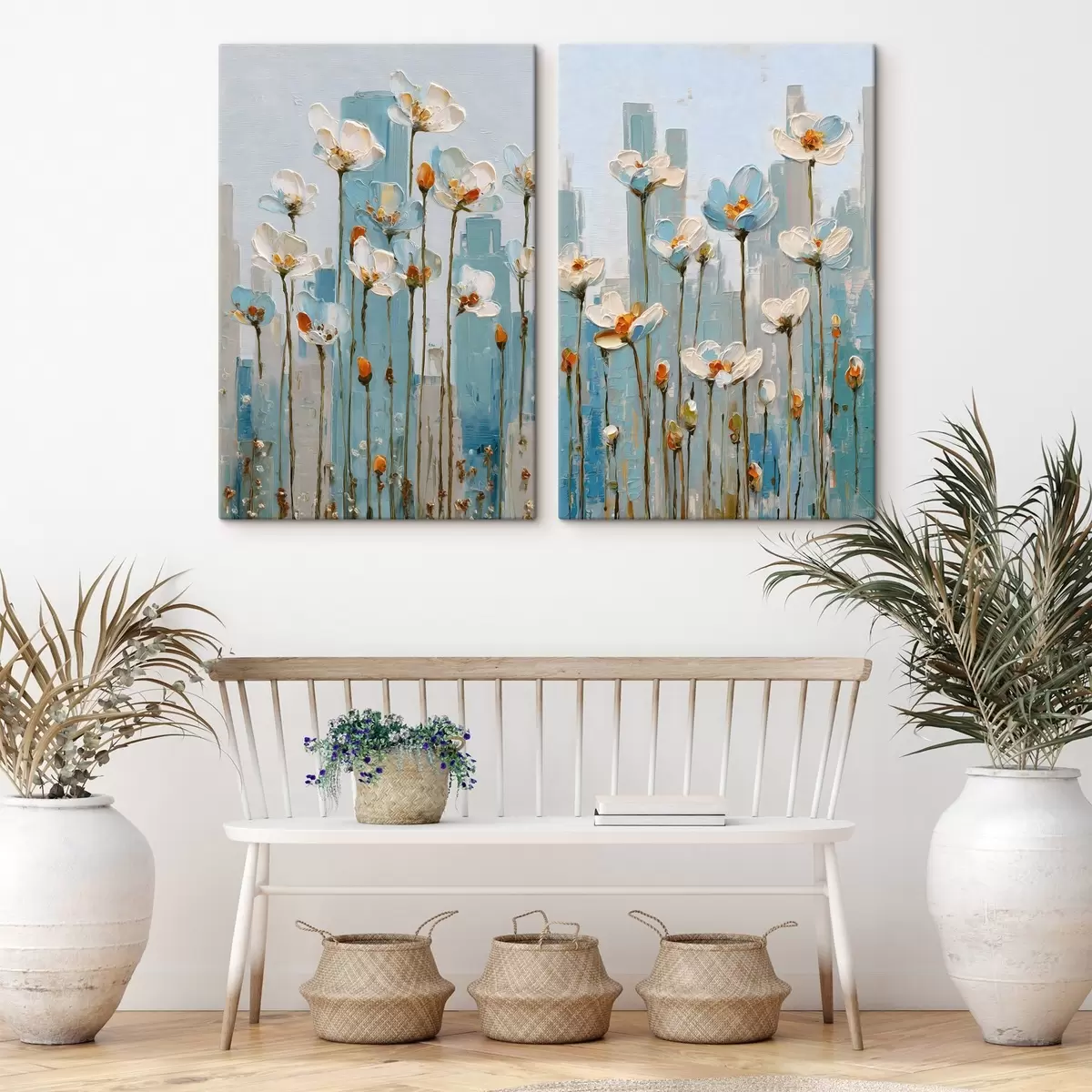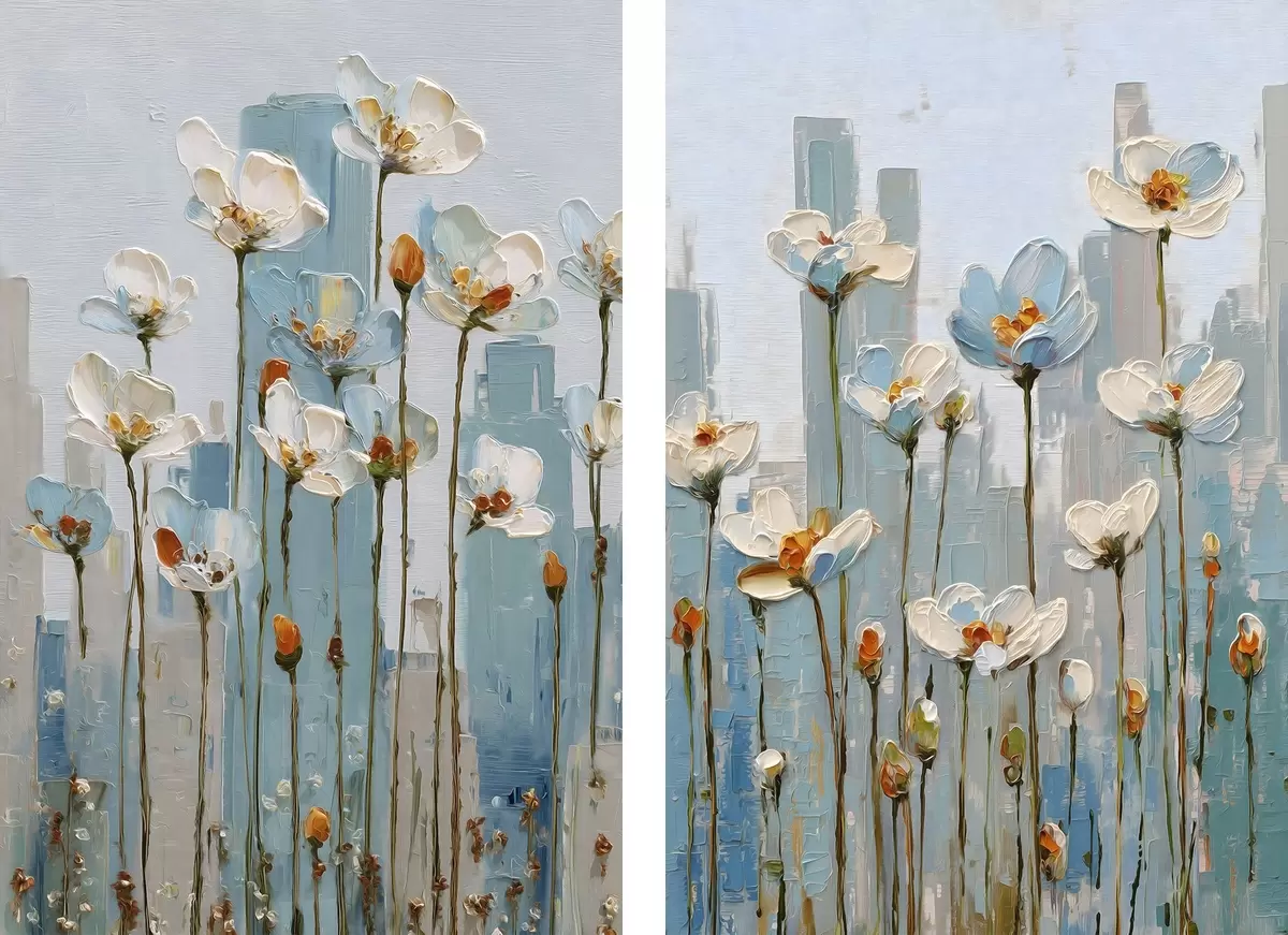 Pictură pe pânză flori pe fundalul orașului, în stilul picturii în ulei Nr m30333
