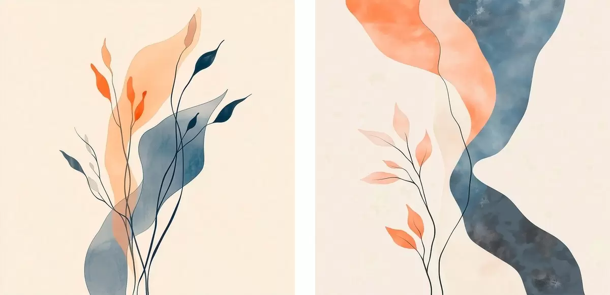Pictură pe pânză Ramuri decorative cu linii subțiri, într-un stil pictural contemporan Nr m30346