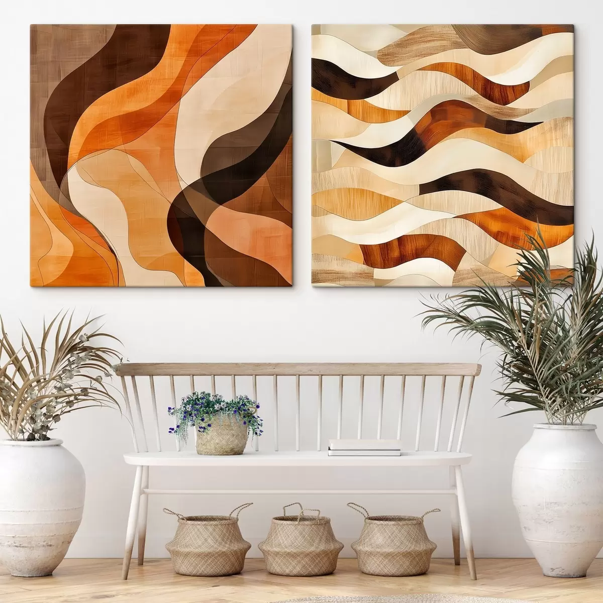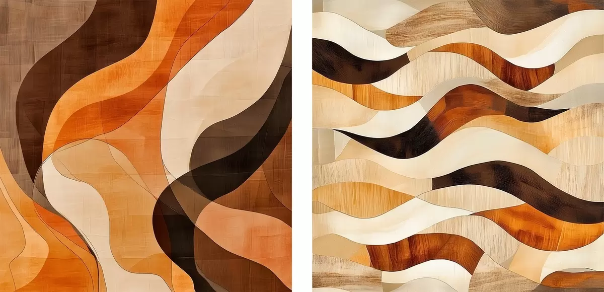 Pictură pe pânză Compoziție abstractă cu linii ondulate într-o gamă caldă de nuanțe maro-bej Nr m30352