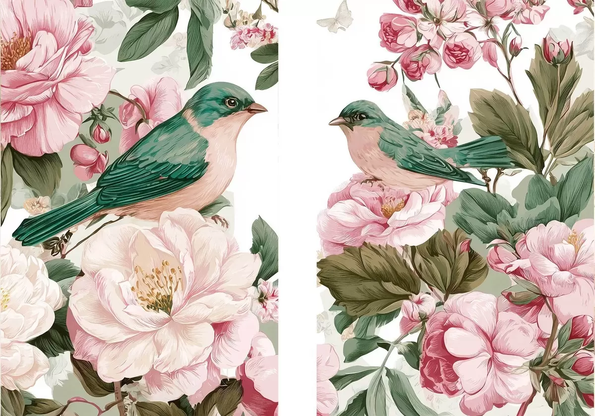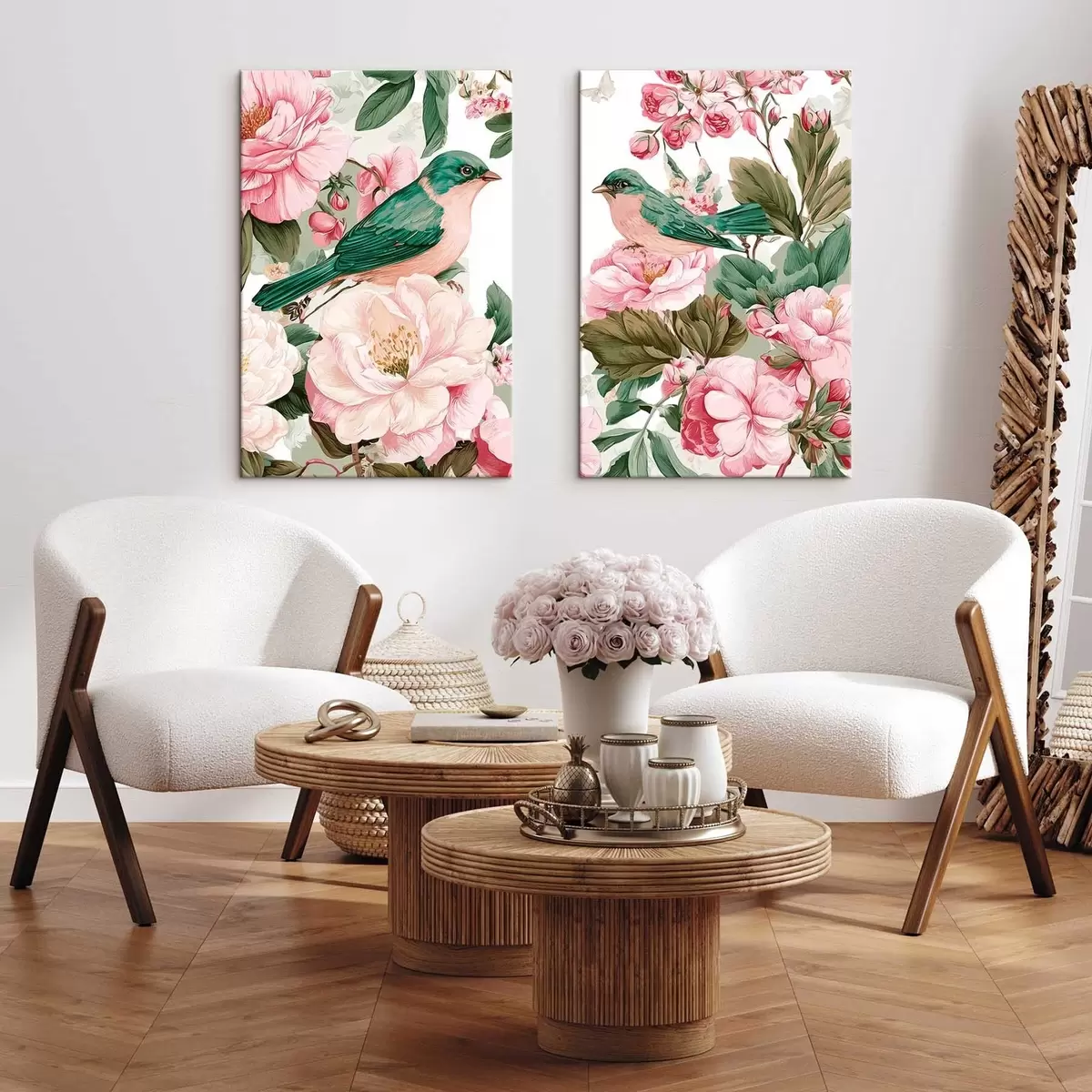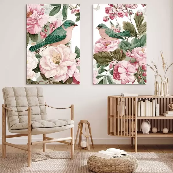 Pictură pe pânză Păsări pe flori de un roz delicat Nr m30386