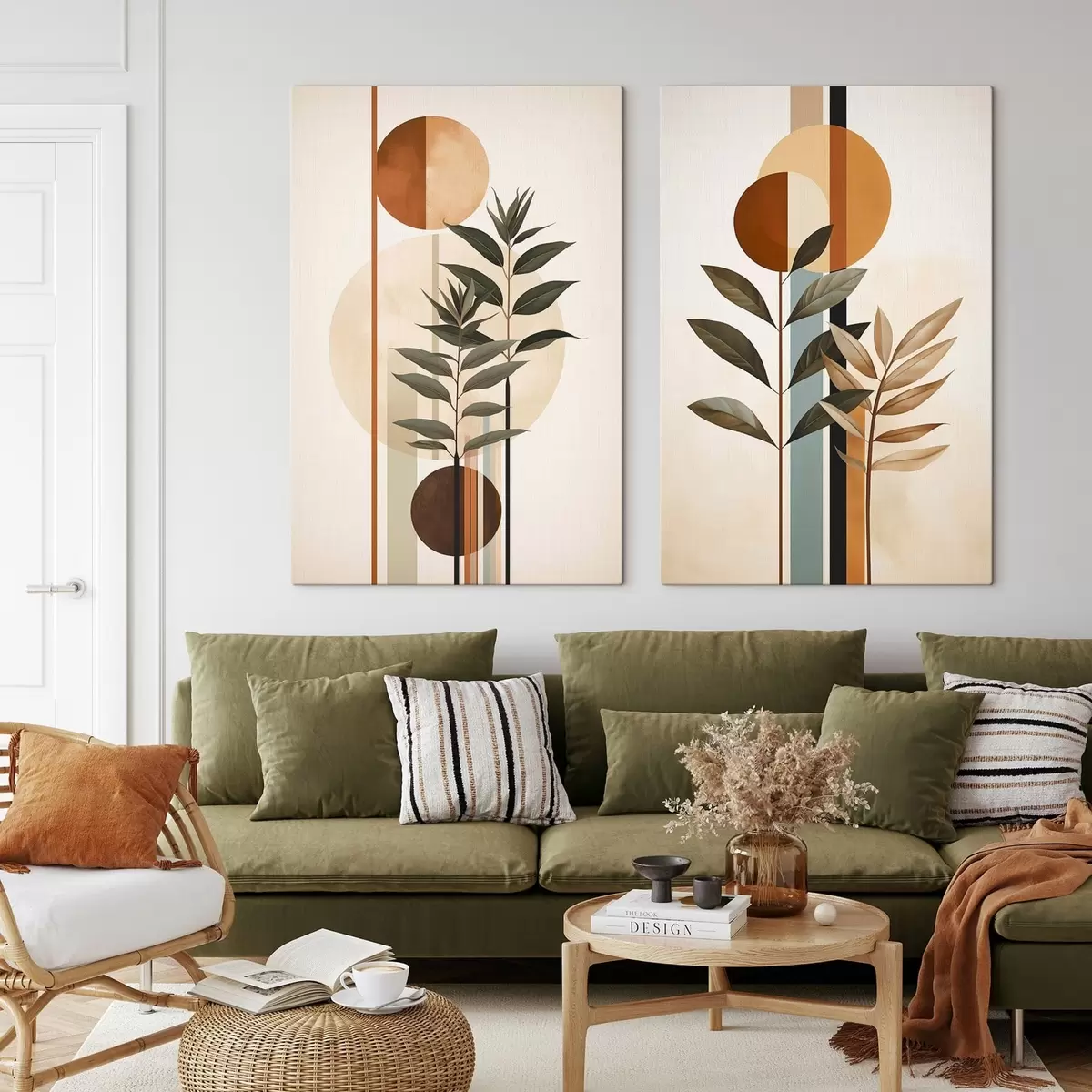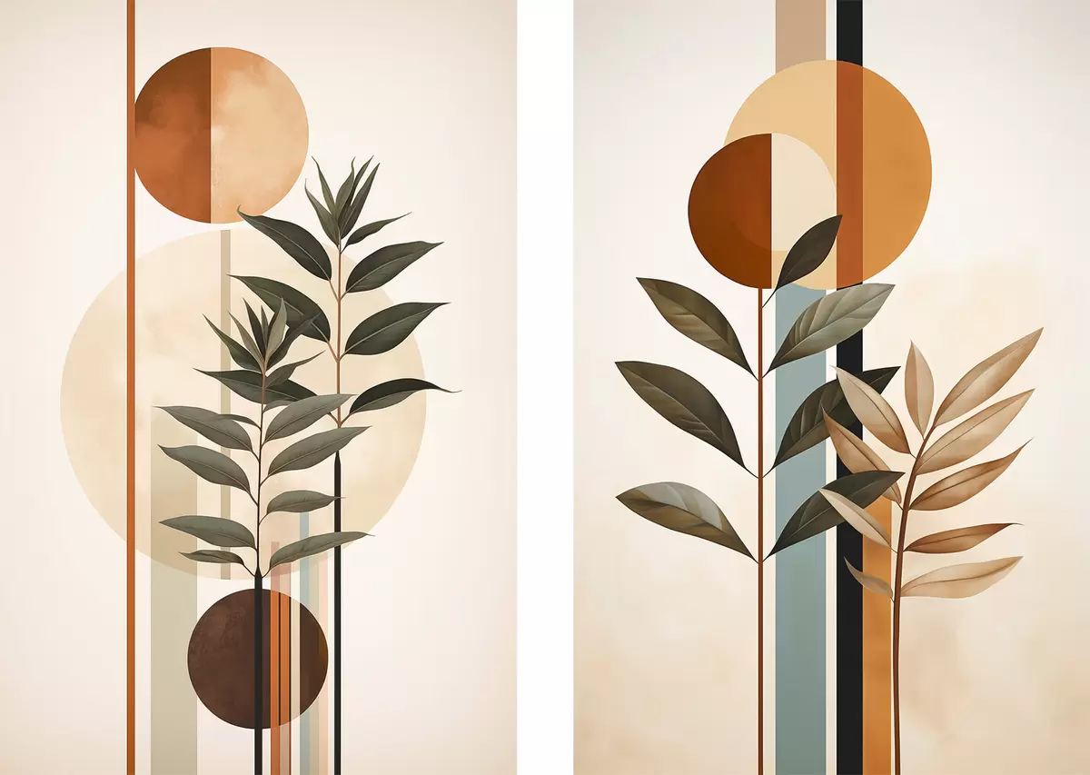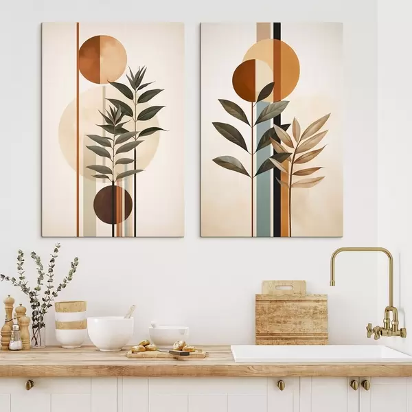 Pictură pe pânză Plante abstracte cu cercuri și linii Nr m30392