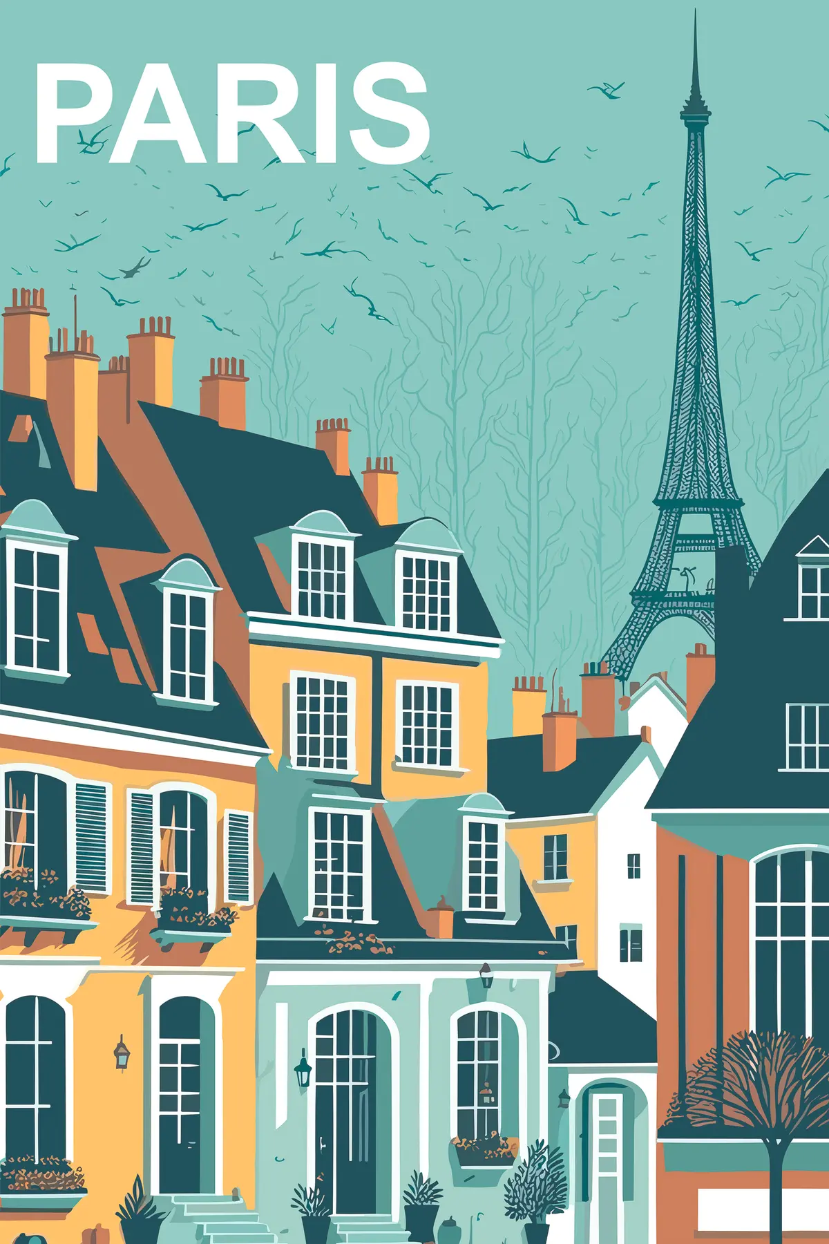 Pictură pe pânză Retro călătorie ilustrare Paris Nr s36331