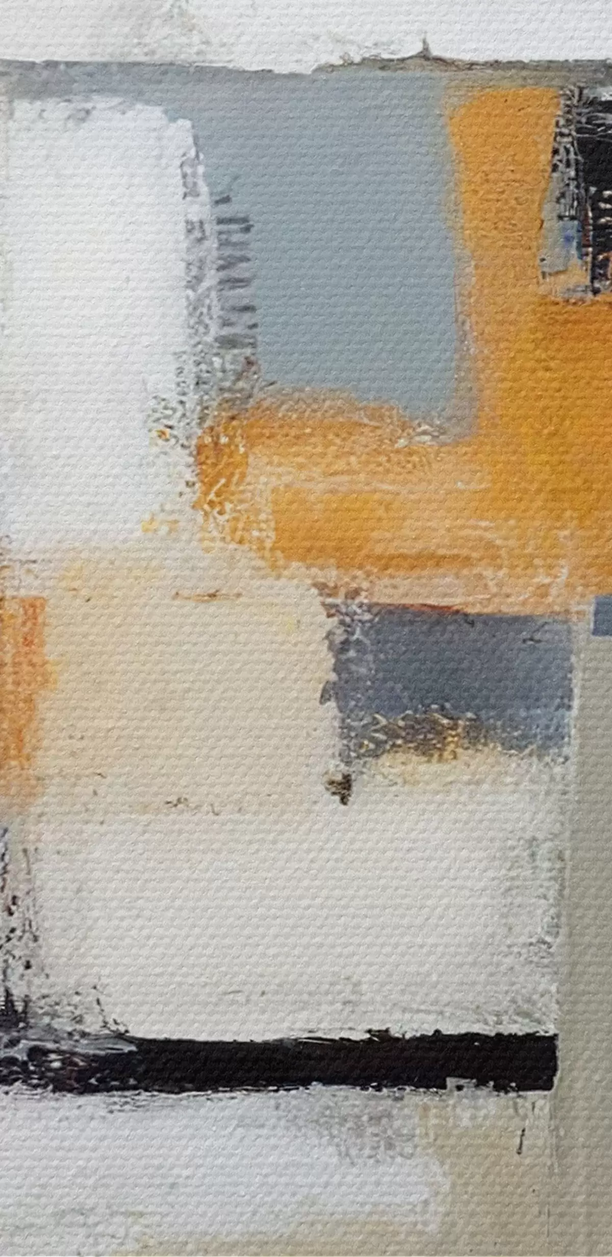 Pictură pe pânză Abstracție bej și gri cu țesături portocalii și albe Nr s36624