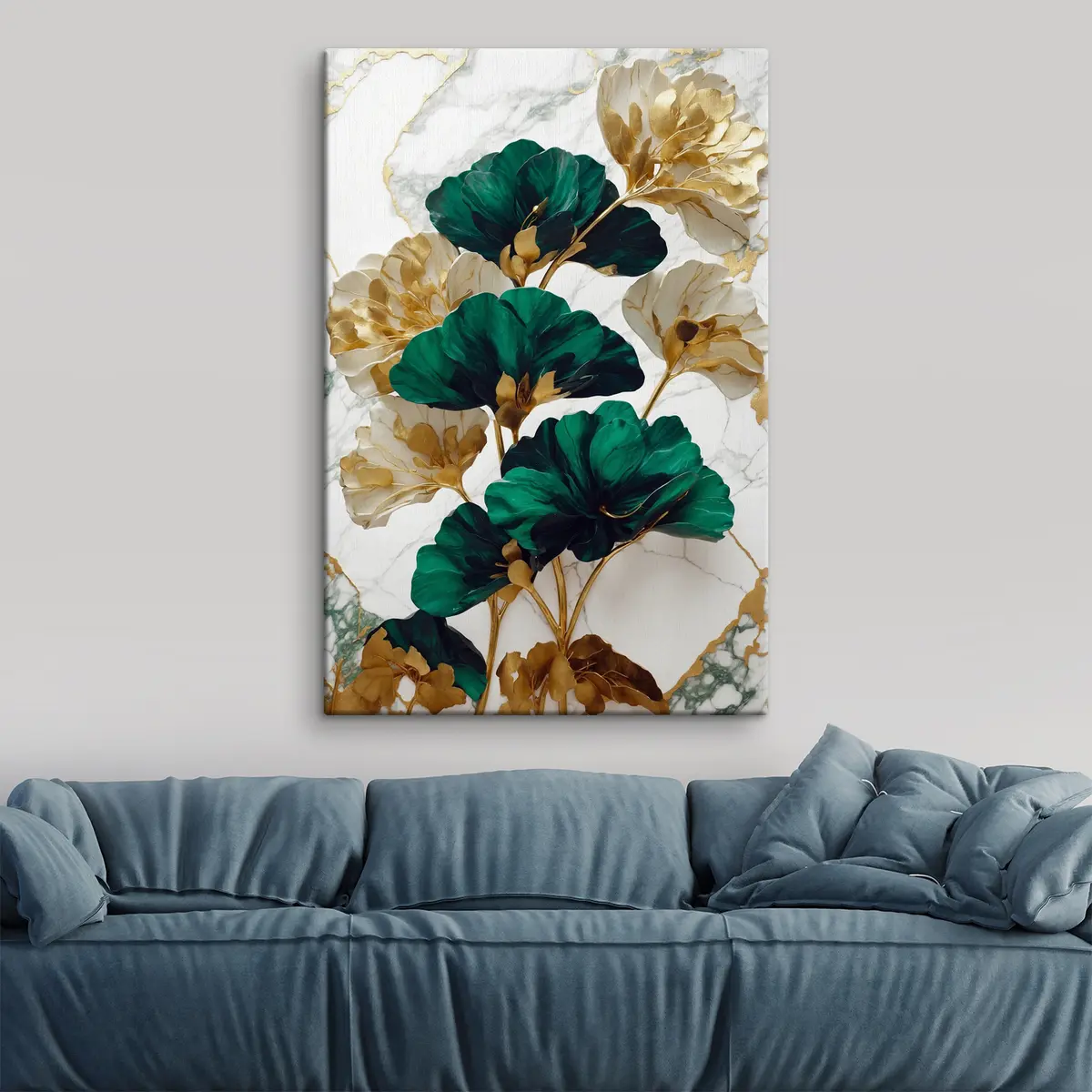 Pictură pe pânză Flori verzi și albe pe un fundal de marmură albă Nr s36646