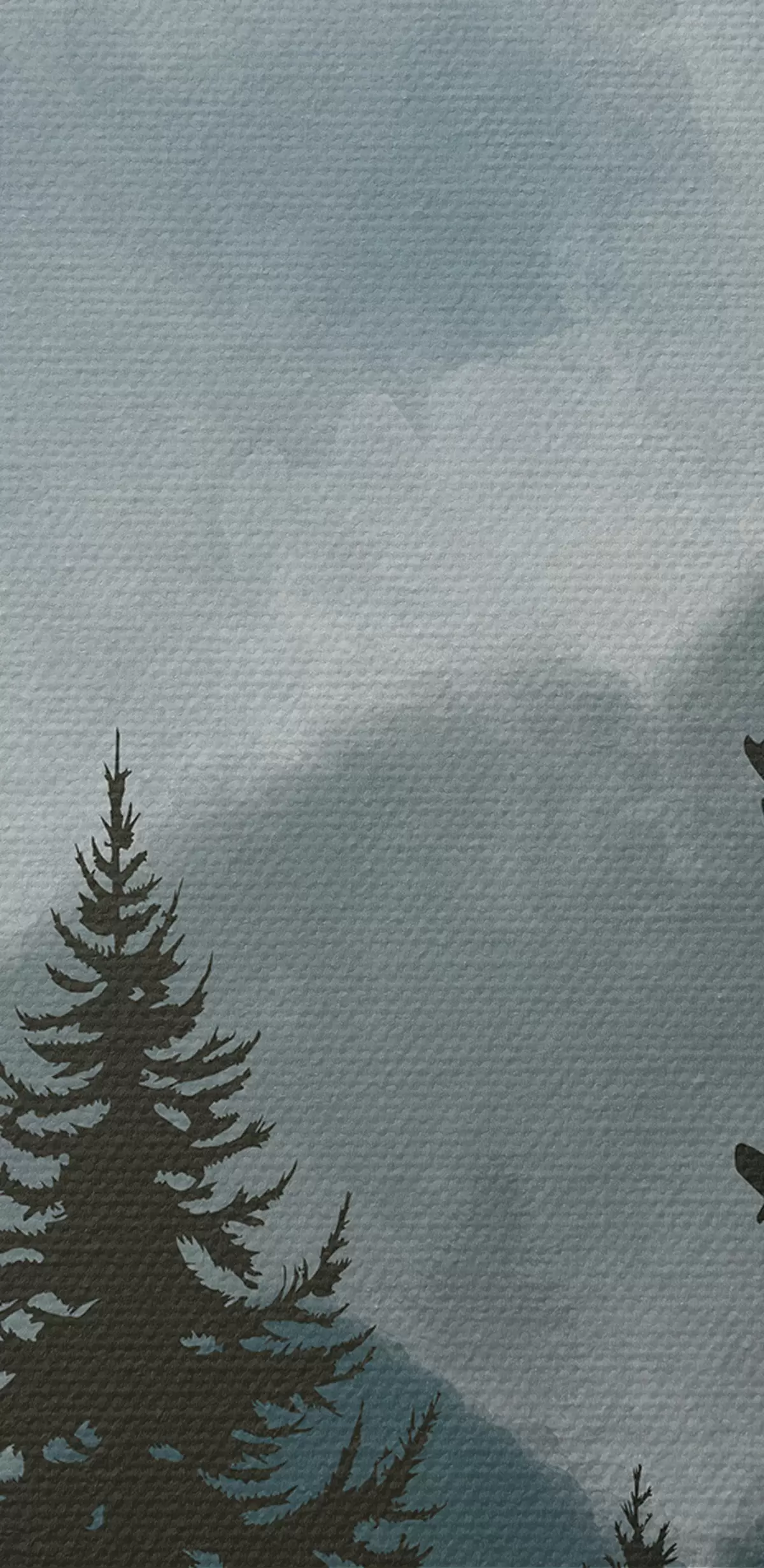 Pictură pe pânză Peisaj de munte cu brazi în acuarelă Nr s37017