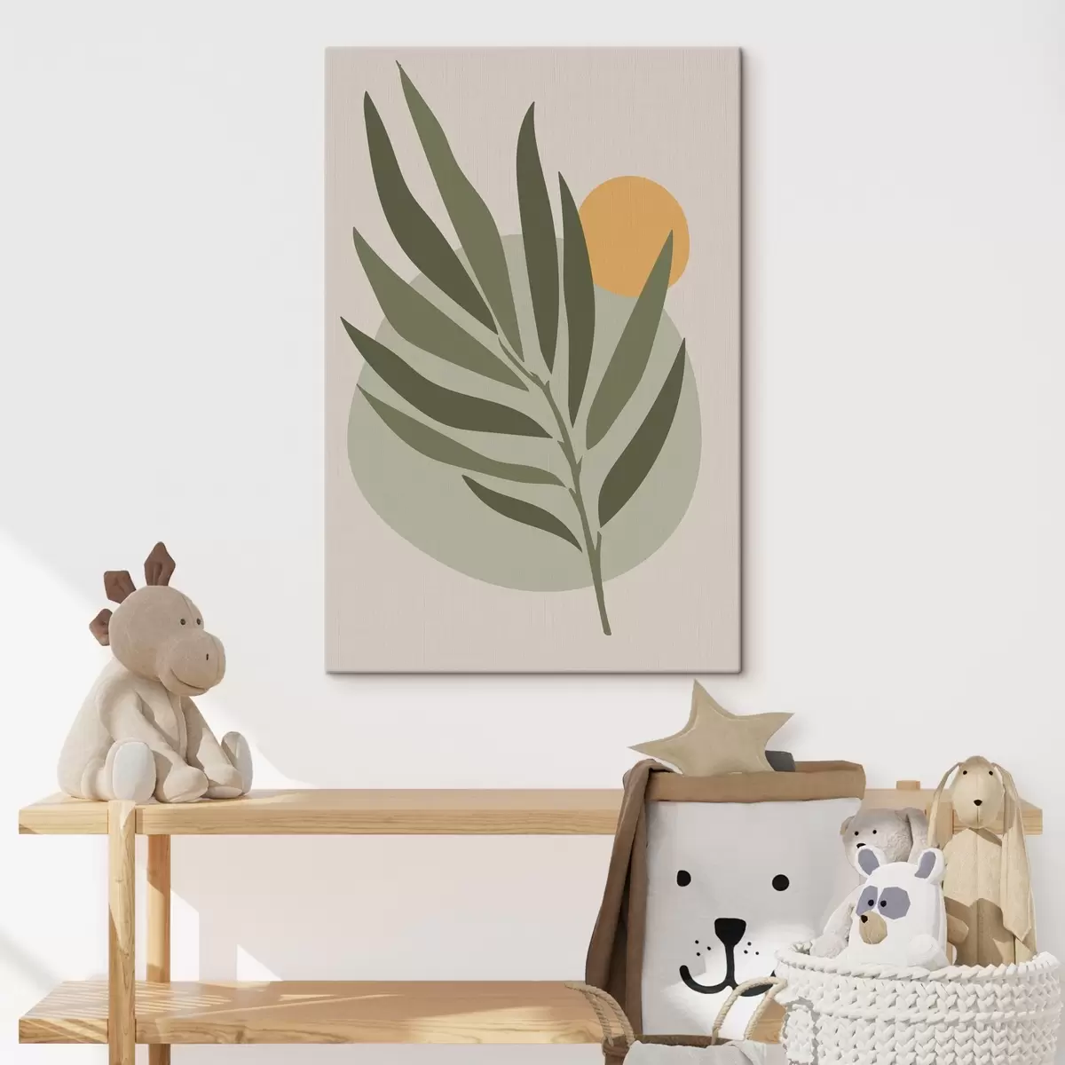Tablouri O frunză verde cu un cerc galben s37442