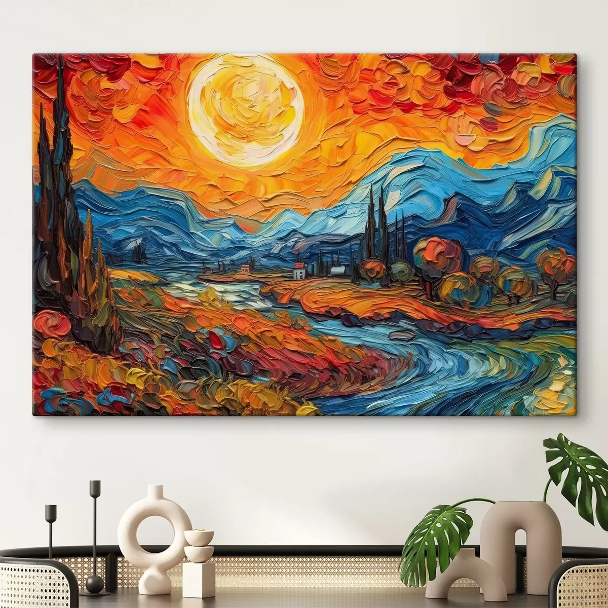 Pictură pe pânză Peisaj vibrant sub un soare strălucitor Nr s38057