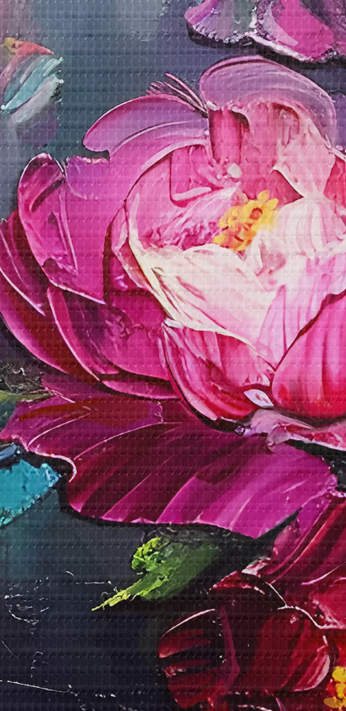Țesătura fină a firelor de pe această pânză seamănă cu suprafața pânzelor artiștilor profesioniști.