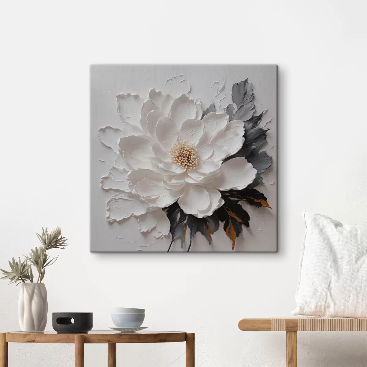 Pictură pe pânză Floare albă pe fundal de ulei Nr s38304