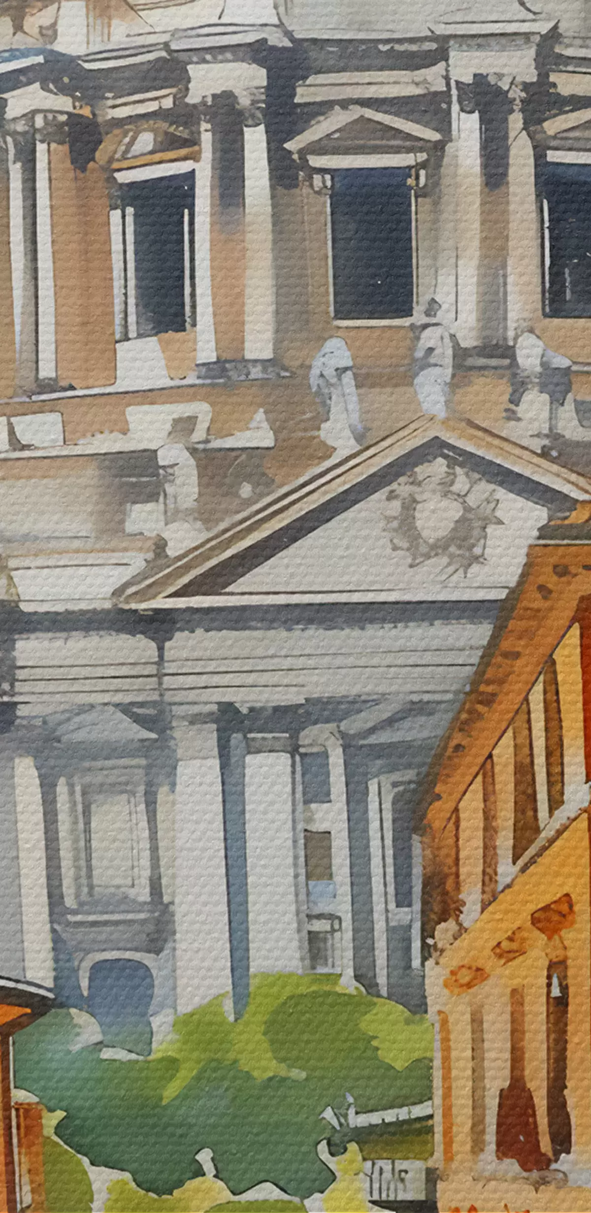 Pentru a întinde pânza pe barele de întins fără a deteriora imaginea, folosim o imagine în oglindă.