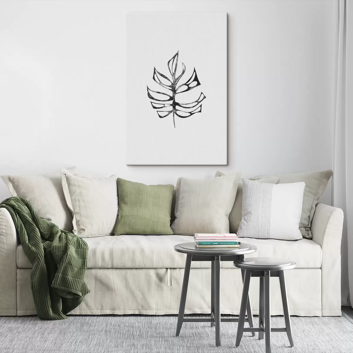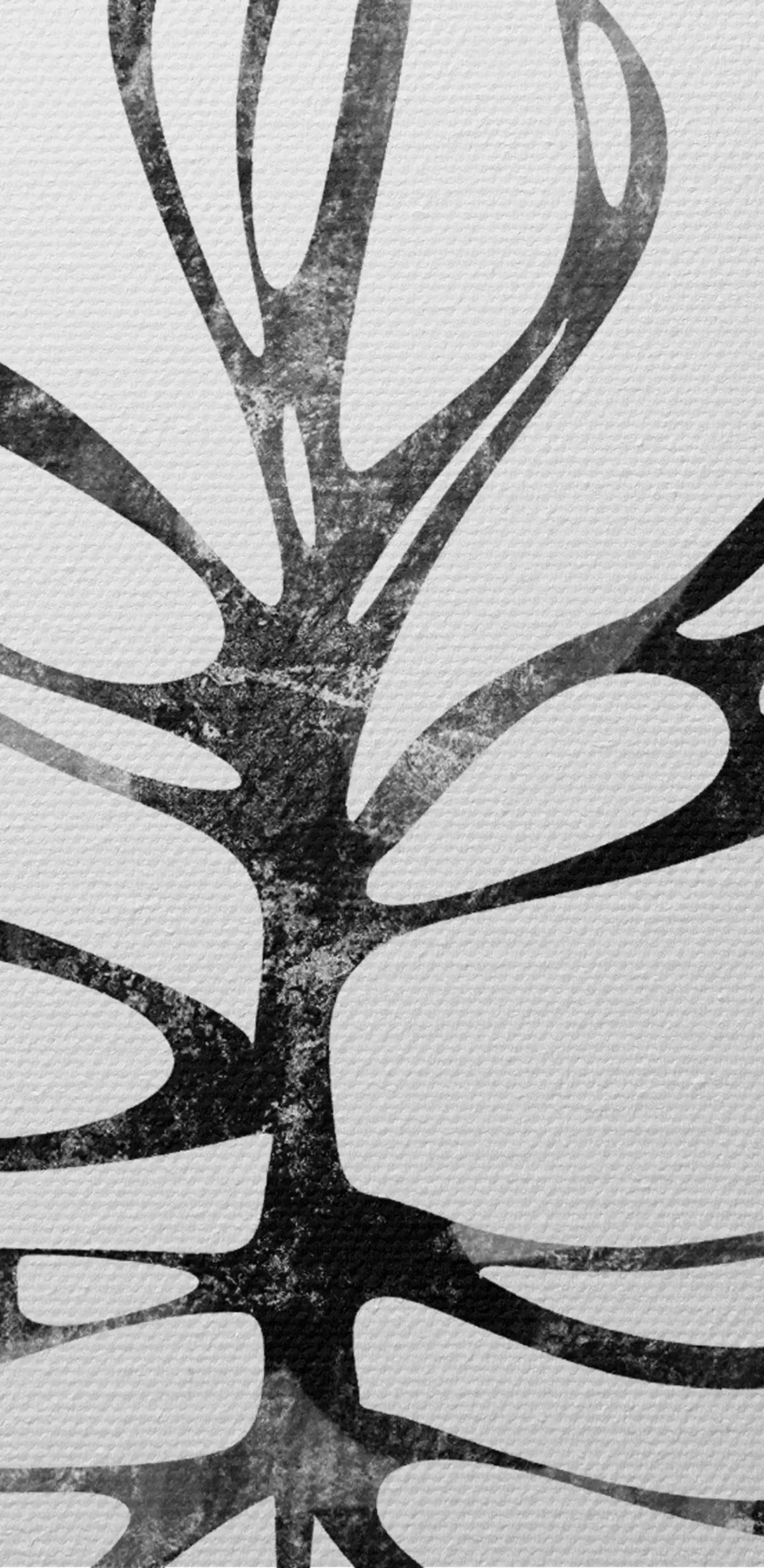 Pictură pe pânză Foaie decorativă cu tăieturi și găuri, tropicală, textură de culoare neagră, minimalism, floral Nr s38342