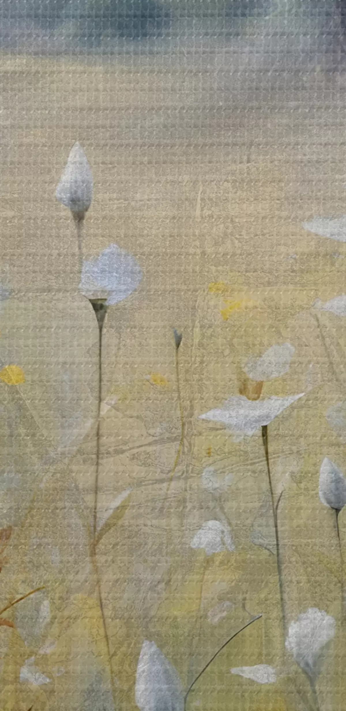 Țesătura fină a firelor de pe această pânză seamănă cu suprafața pânzelor artiștilor profesioniști.