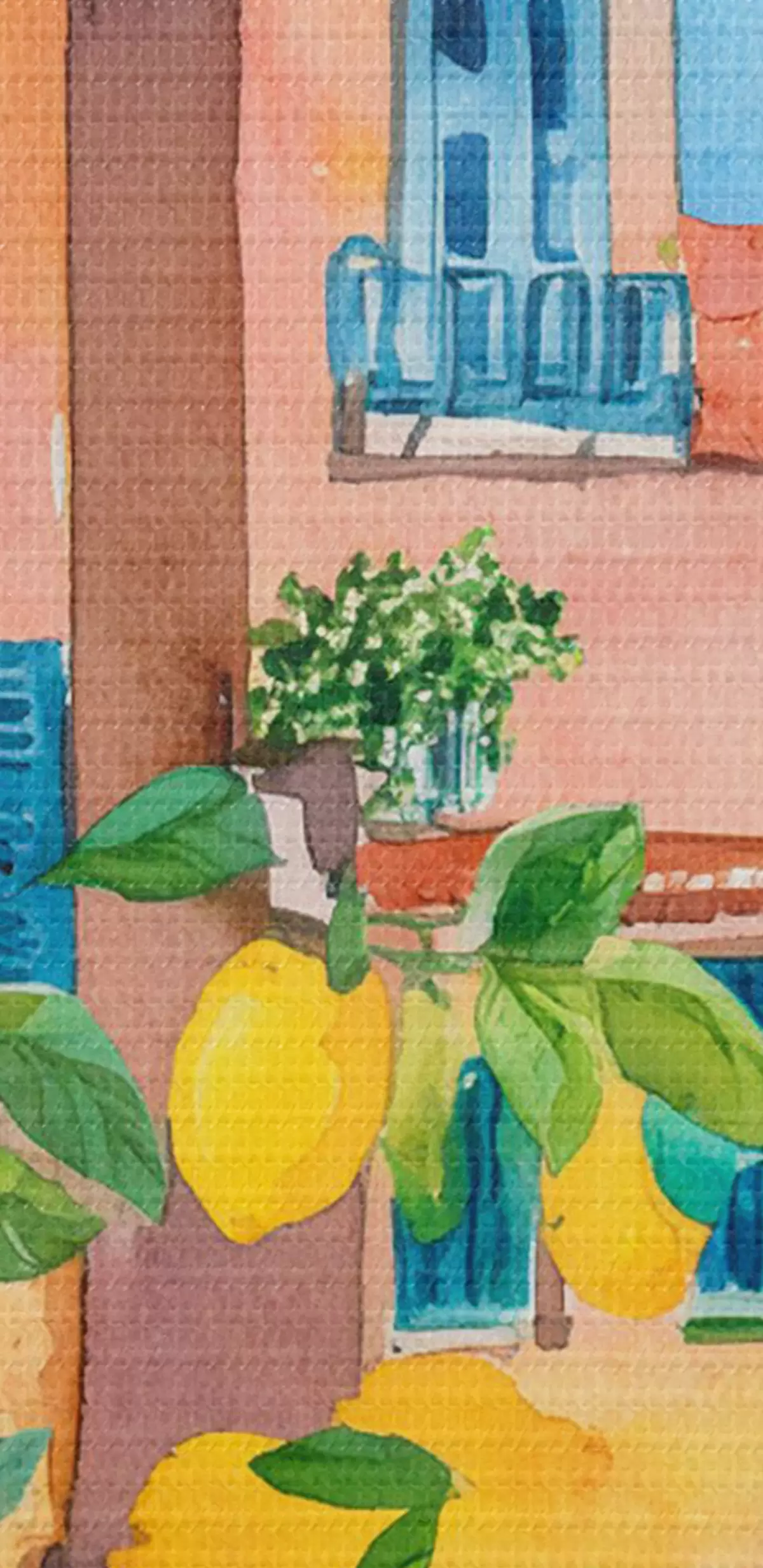 Pictură pe pânză Arhitectura orașului italian, coasta mării, vară, acuarelă, copac de lămâie Nr s38395