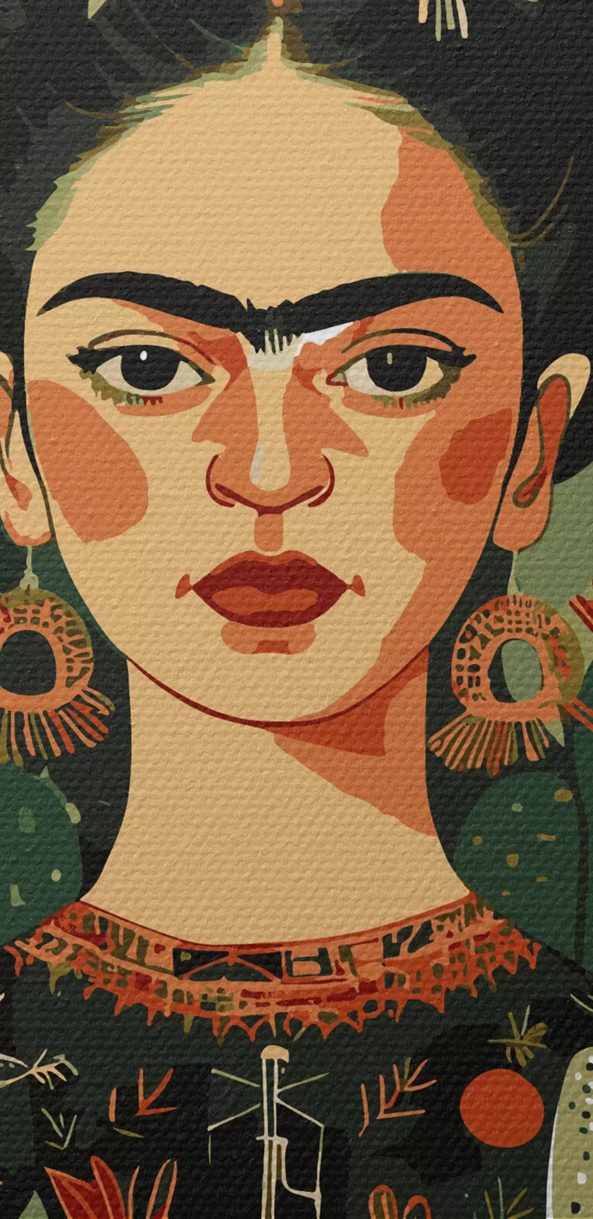 Pictură pe pânză Frida în stil verde în cactuși Nr s38415