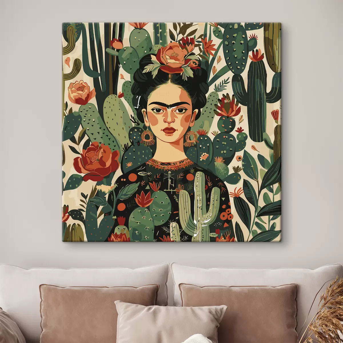 Pictură pe pânză Frida în stil verde în cactuși Nr s38415