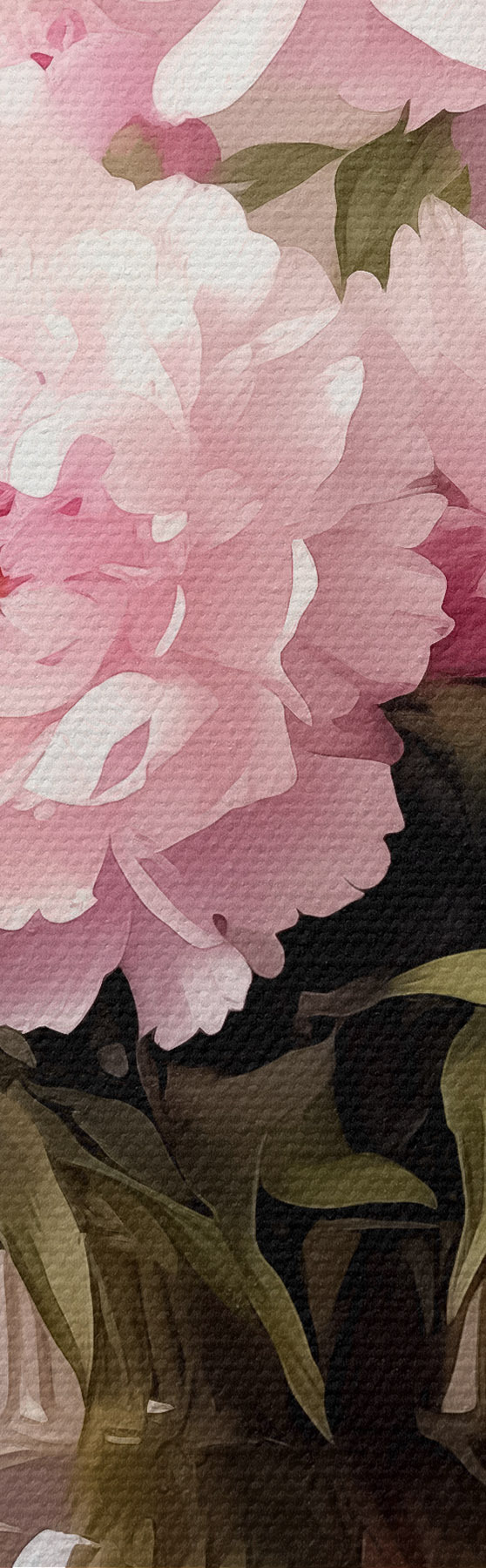 Pictură pe pânză Peonii roz într-o vază de sticlă pe un fundal negru, imitație pictură în ulei, flori Nr s38482