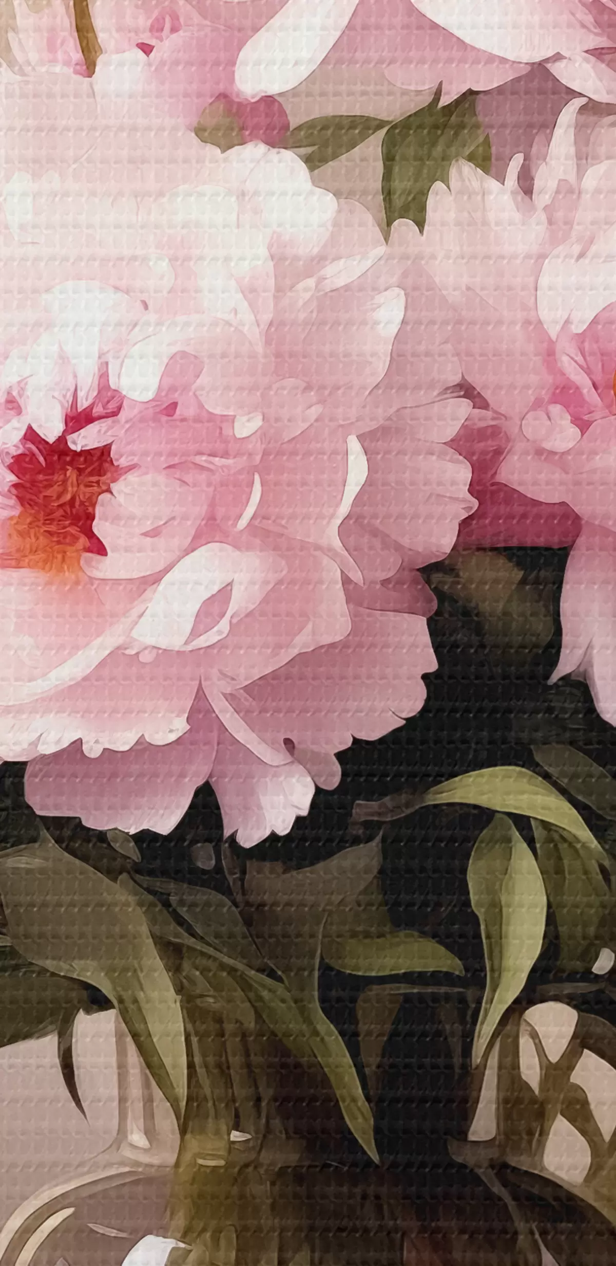 Tablouri Peonii roz într-o vază de sticlă pe un fundal negru, imitație pictură în ulei, flori s38482