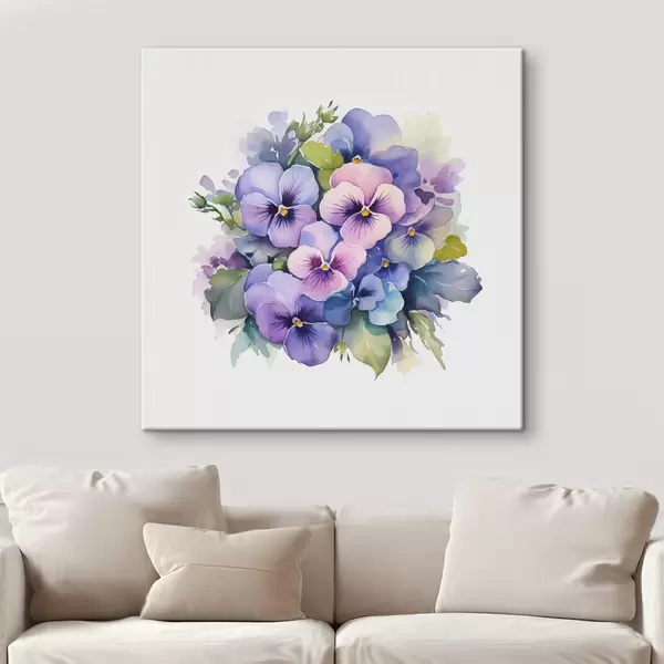 Pictură pe pânză Violete acuarelă ilustrare, buchet, flori, albastru, violet, culoare verde Nr s38486