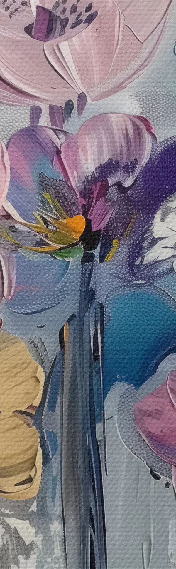 Trei tipuri de materiale sunt disponibile pentru comandă: Economic Canvas - un material dens și durabil pentru imprimarea digitală, identic cu pânza de pictor, suprafață impermeabilă, reproducere realistă a detaliilor, material cu granulație medie. Premium Canvas - textura seamănă cu cea a pânzei unui pictor (fire mici împletite). Reproducere moale, detaliată a imaginii pe o suprafață mată. Eco-Premium - țesătură 100% bumbac de înaltă calitate. Datorită fibrelor naturale de bumbac, materialul este durabil și rezistent la uzură. Reproducere excelentă a culorilor și a detaliilor.