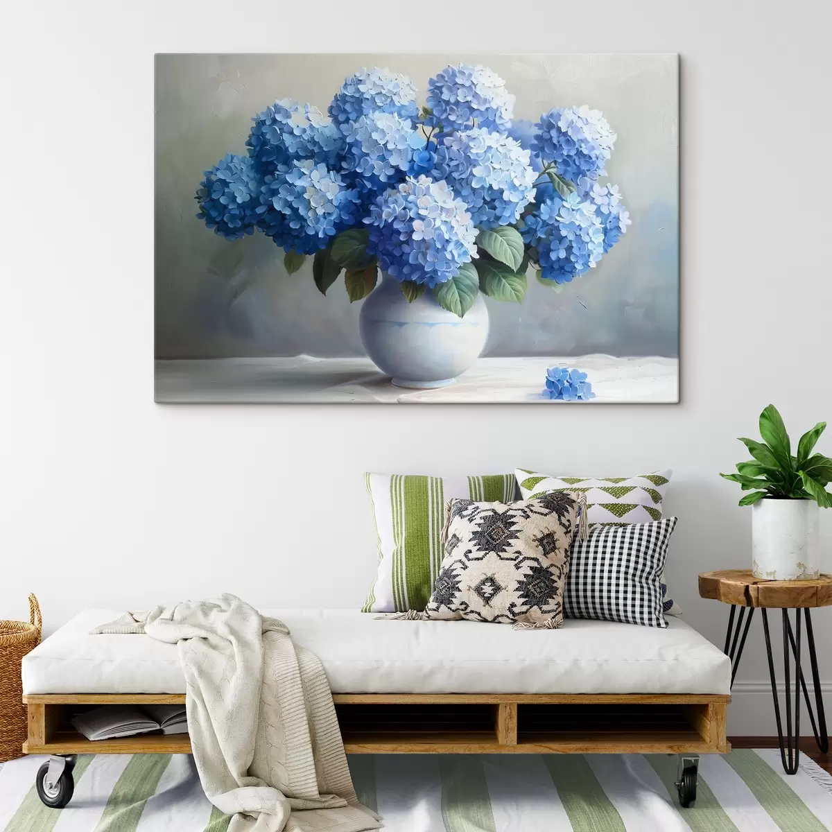 Tablouri Frumoase hortensii albastre într-o vază s38696