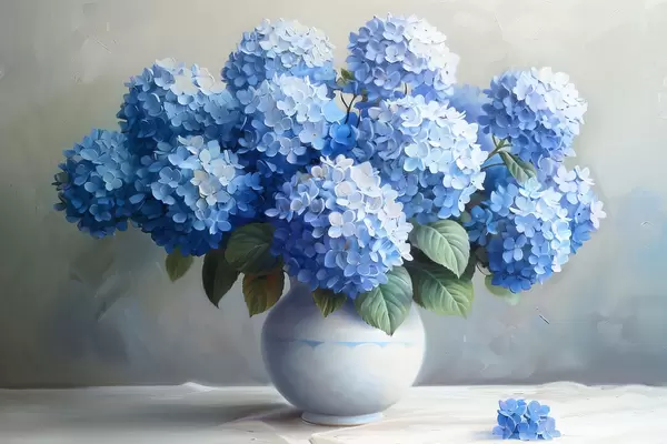 Tablouri Frumoase hortensii albastre într-o vază s38696