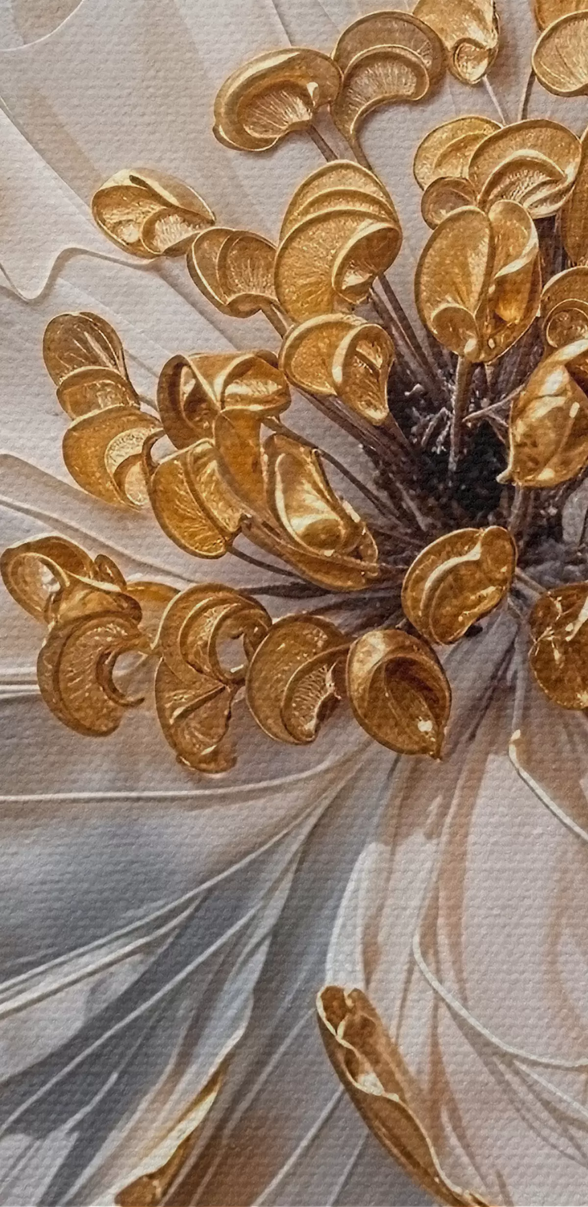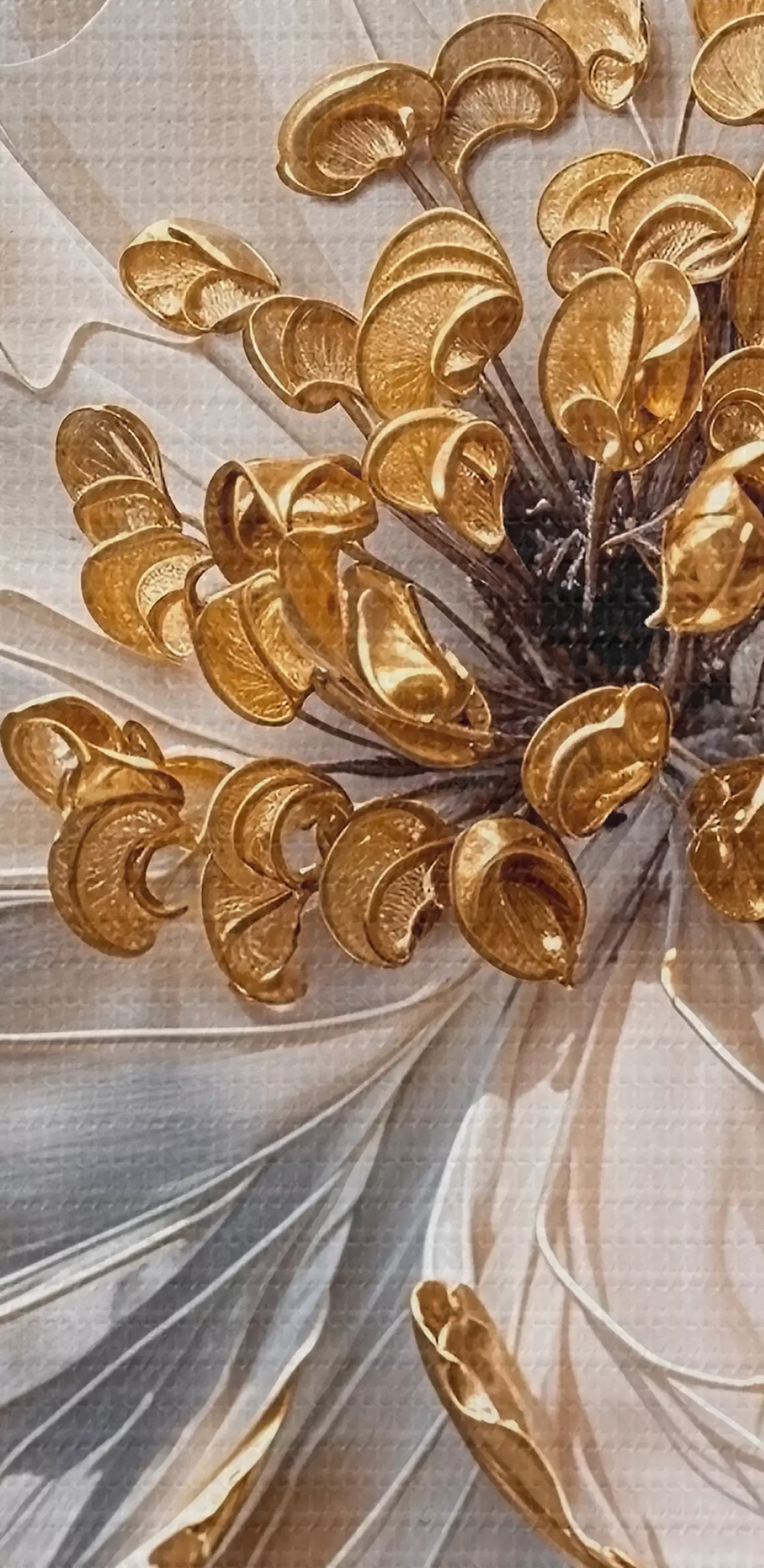 Pictură pe pânză Un prim plan al unei flori mari albe cu stamine galbene în centru, decor artistic pictat în ulei Nr s38755