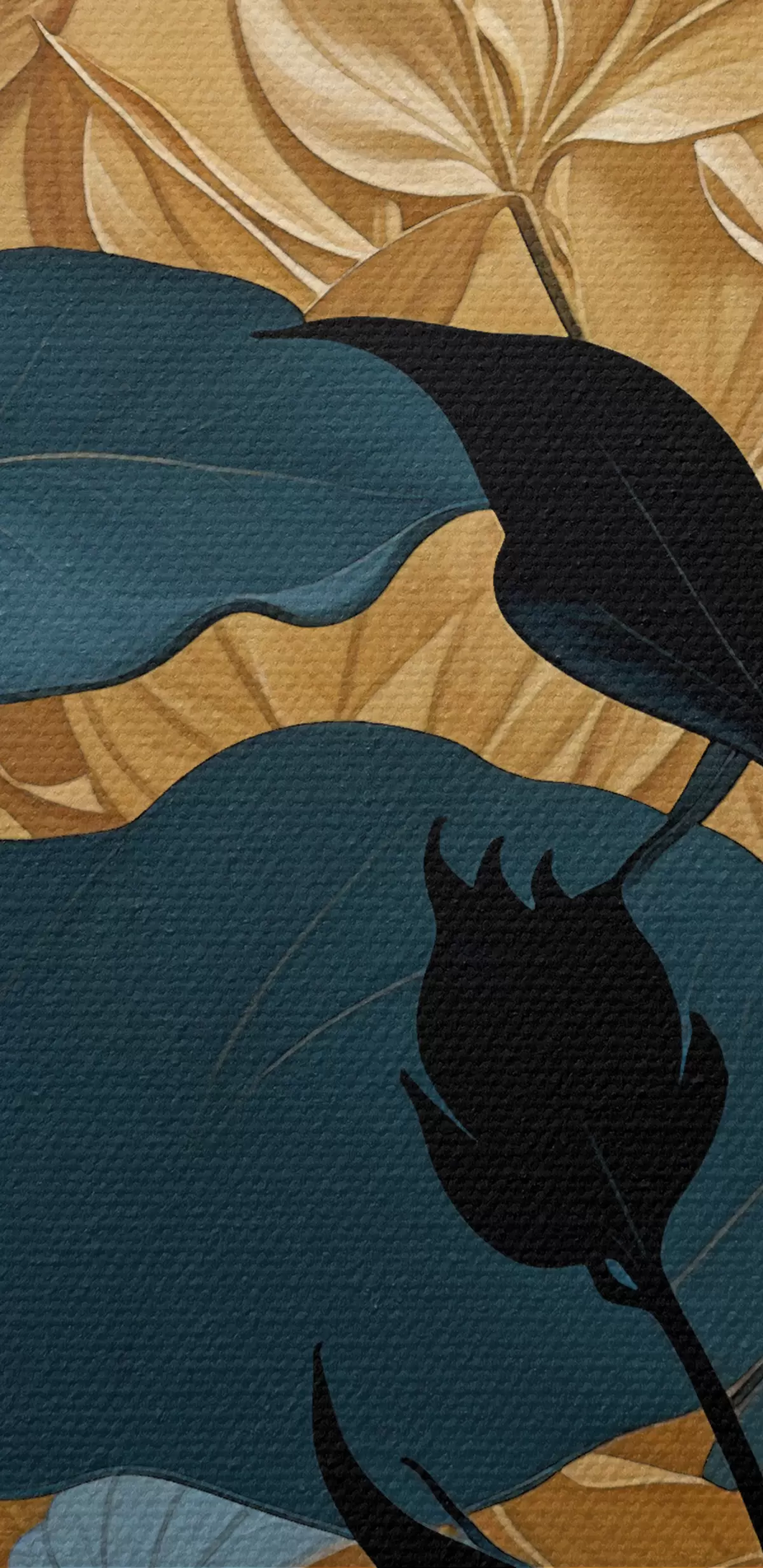 Tablouri Compoziție florală abstractă cu frunze mari și forme întunecate în siluetă s38822
