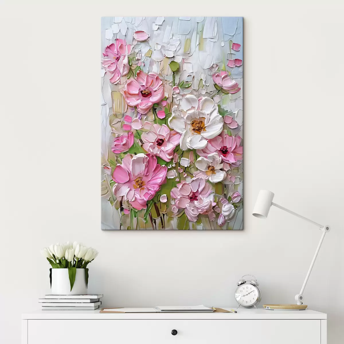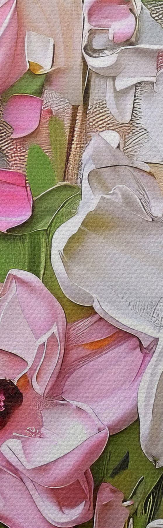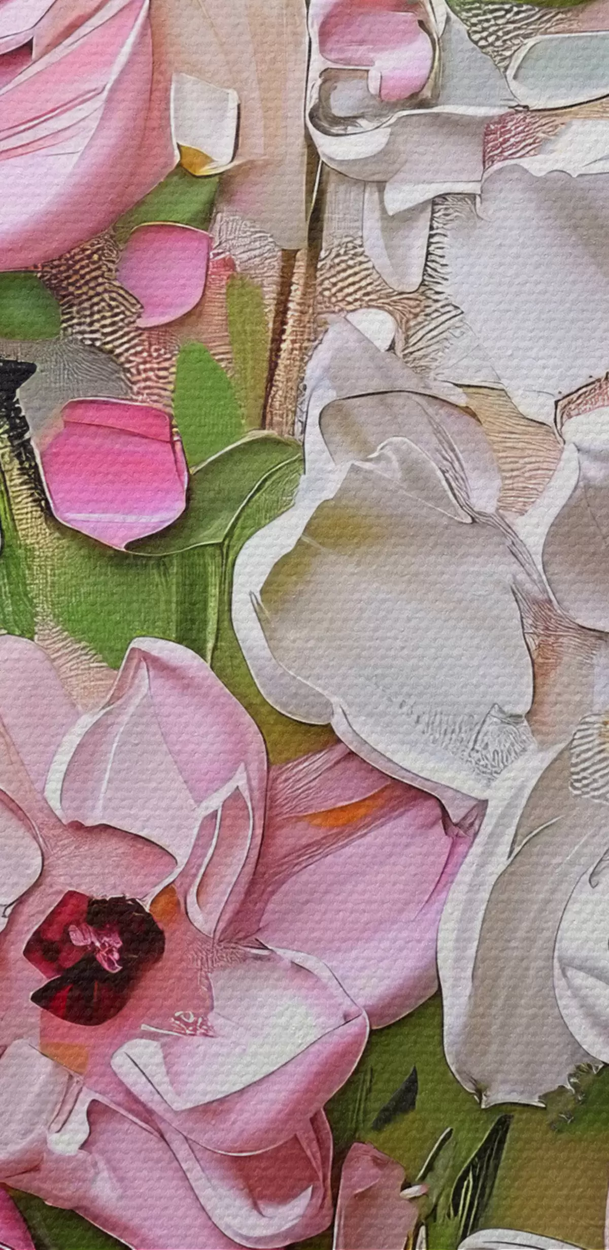 Trei tipuri de materiale sunt disponibile pentru comandă: Economic Canvas - un material dens și durabil pentru imprimarea digitală, identic cu pânza de pictor, suprafață impermeabilă, reproducere realistă a detaliilor, material cu granulație medie. Premium Canvas - textura seamănă cu cea a pânzei unui pictor (fire mici împletite). Reproducere moale, detaliată a imaginii pe o suprafață mată. Eco-Premium - țesătură 100% bumbac de înaltă calitate. Datorită fibrelor naturale de bumbac, materialul este durabil și rezistent la uzură. Reproducere excelentă a culorilor și a detaliilor.