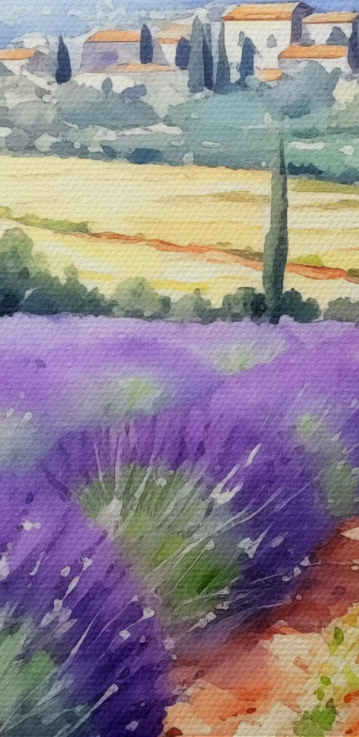 Pictură pe pânză Acuarelă câmp lavanda pe un fundal de munți și țară Nr s38913