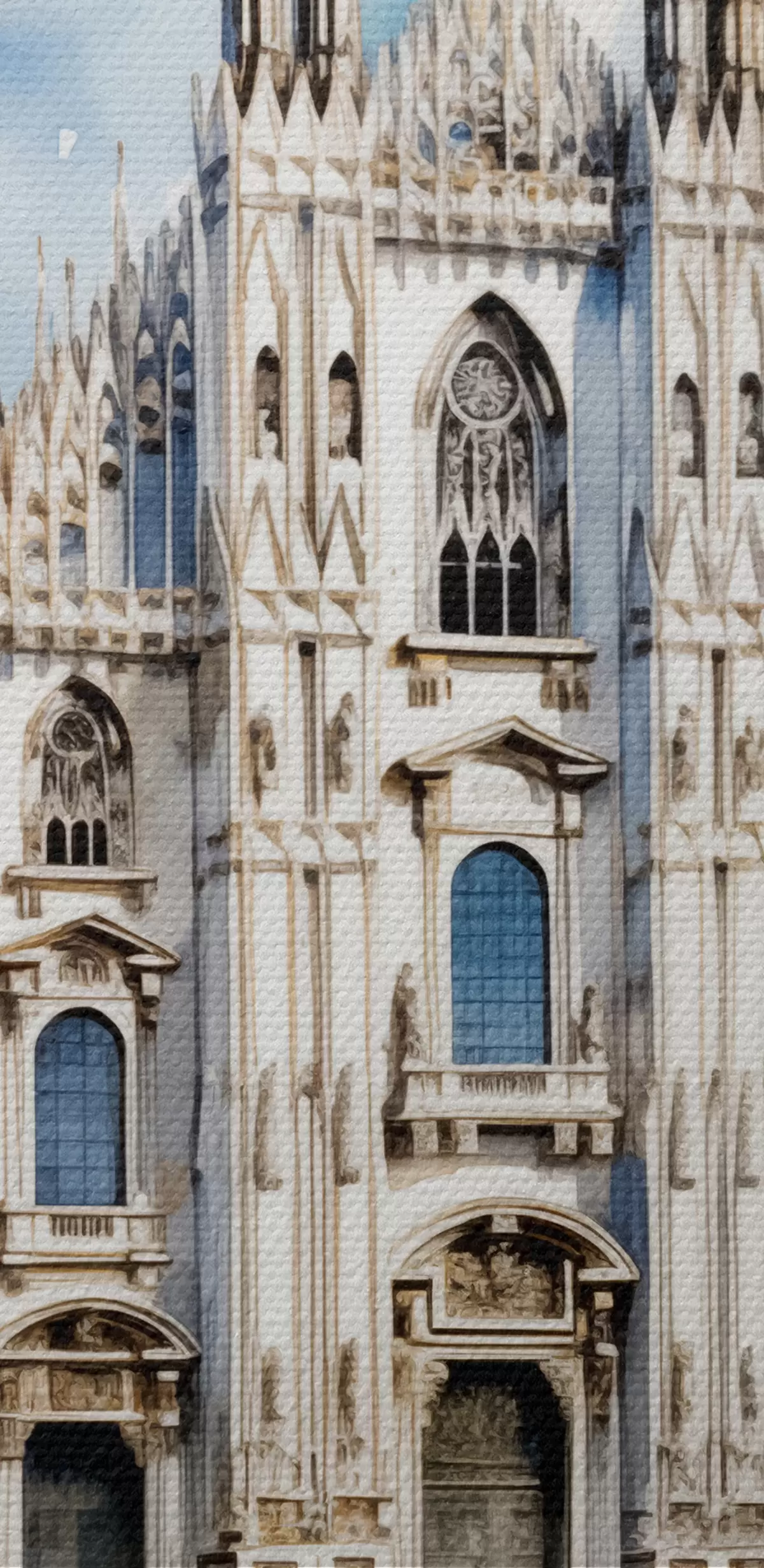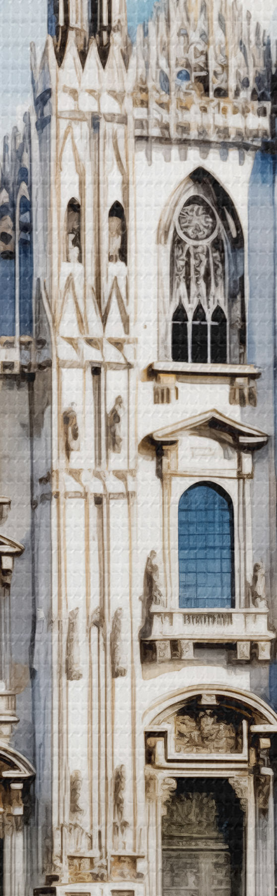 Pictură pe pânză Catedrala Duomo din Milano, arhitectură, oraș, ploaie, acuarelă, albastru, gri, oameni pe jos Nr s38938