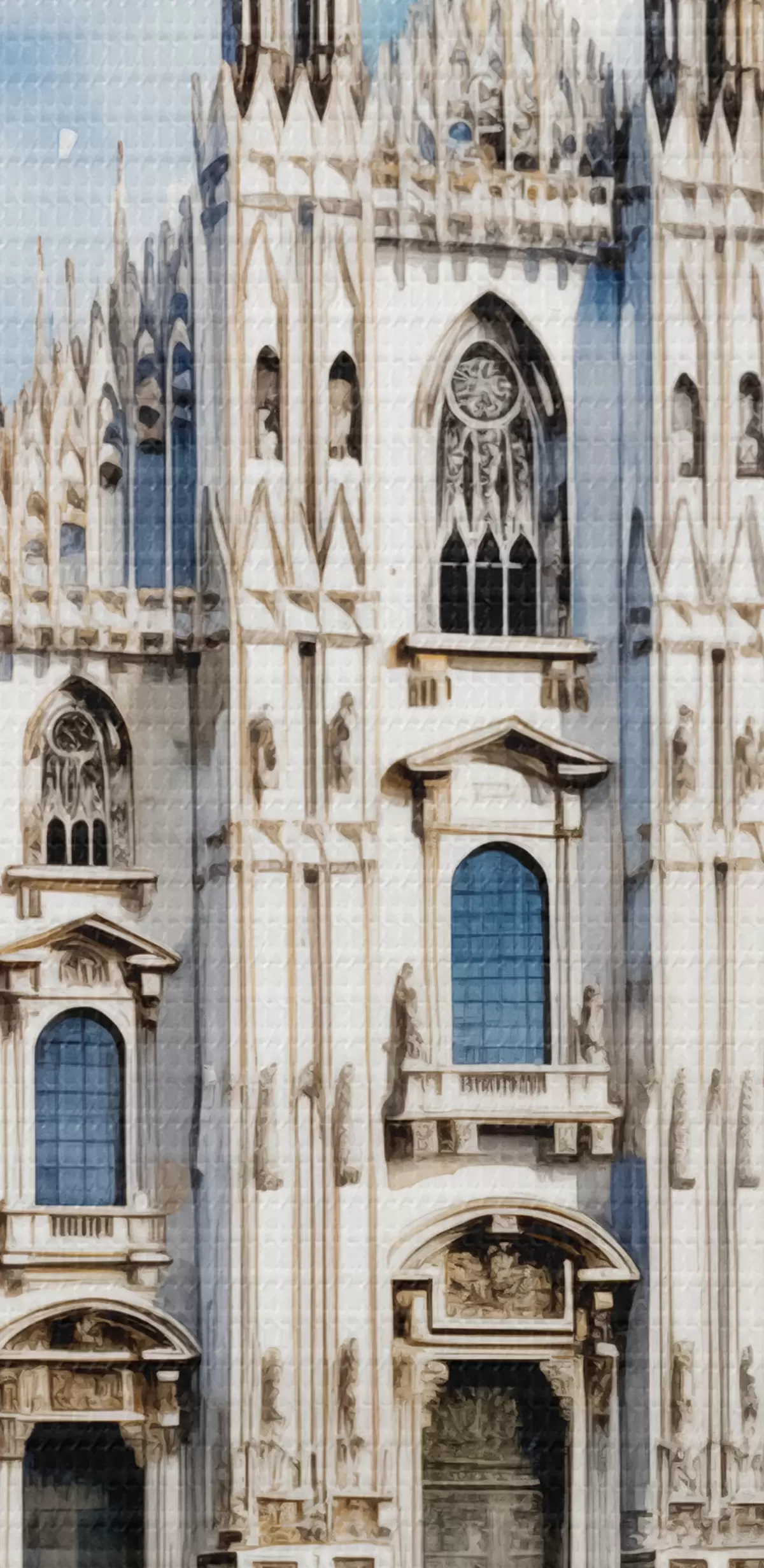 Tablouri Catedrala Duomo din Milano, arhitectură, oraș, ploaie, acuarelă, albastru, gri, oameni pe jos s38938