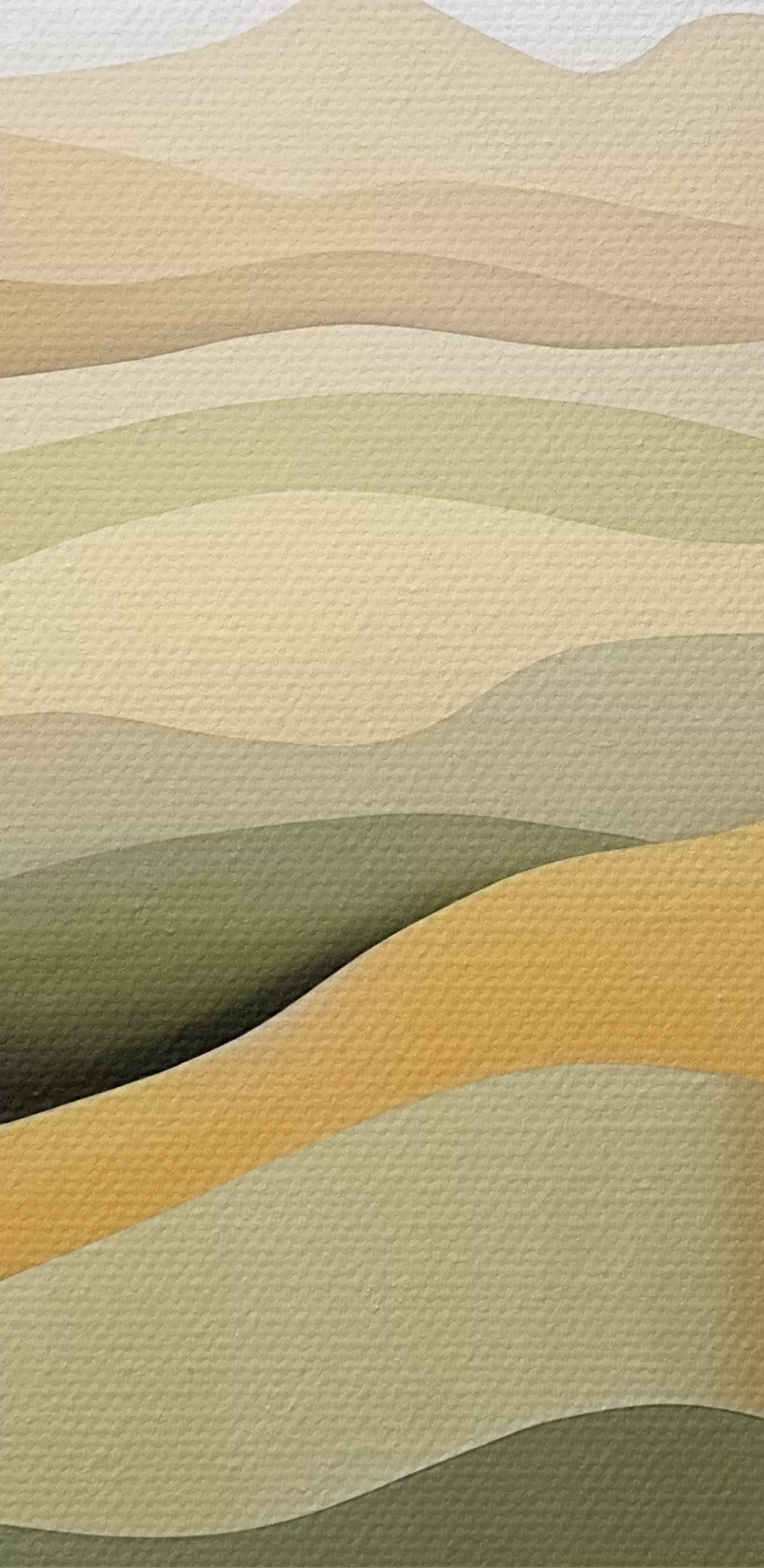 Pictură pe pânză Dealuri, peisaj abstract, guașă, verde, ocru, sepia, gri Nr s38952