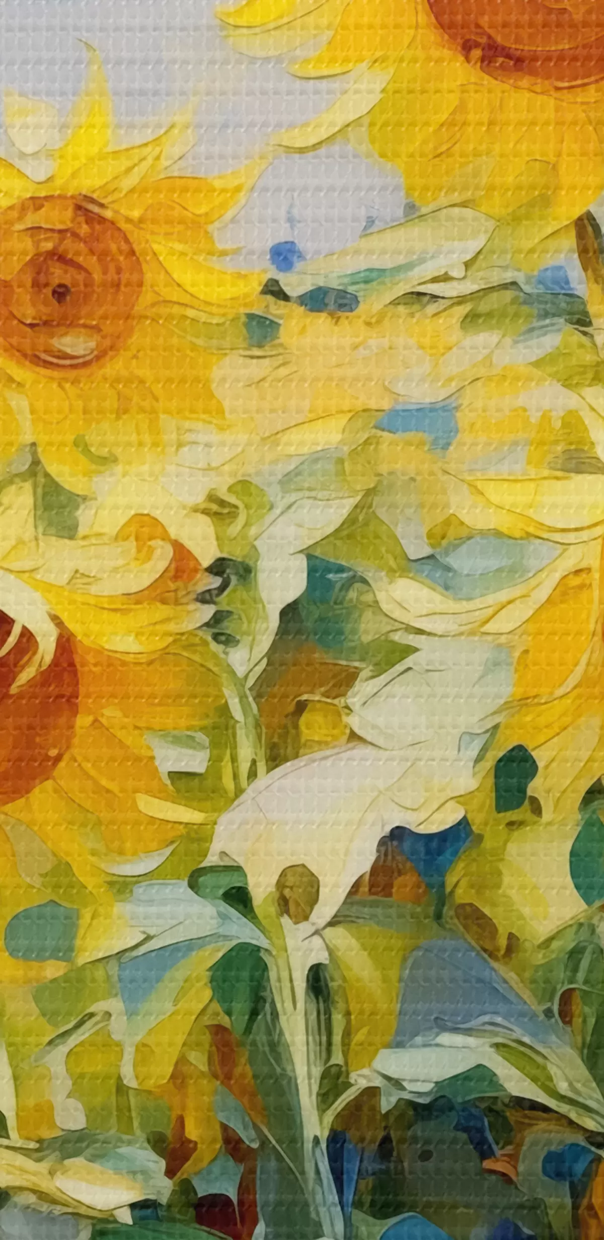 Tablouri Câmp de floarea soarelui pictură în ulei, galben și albastru culoare s38953