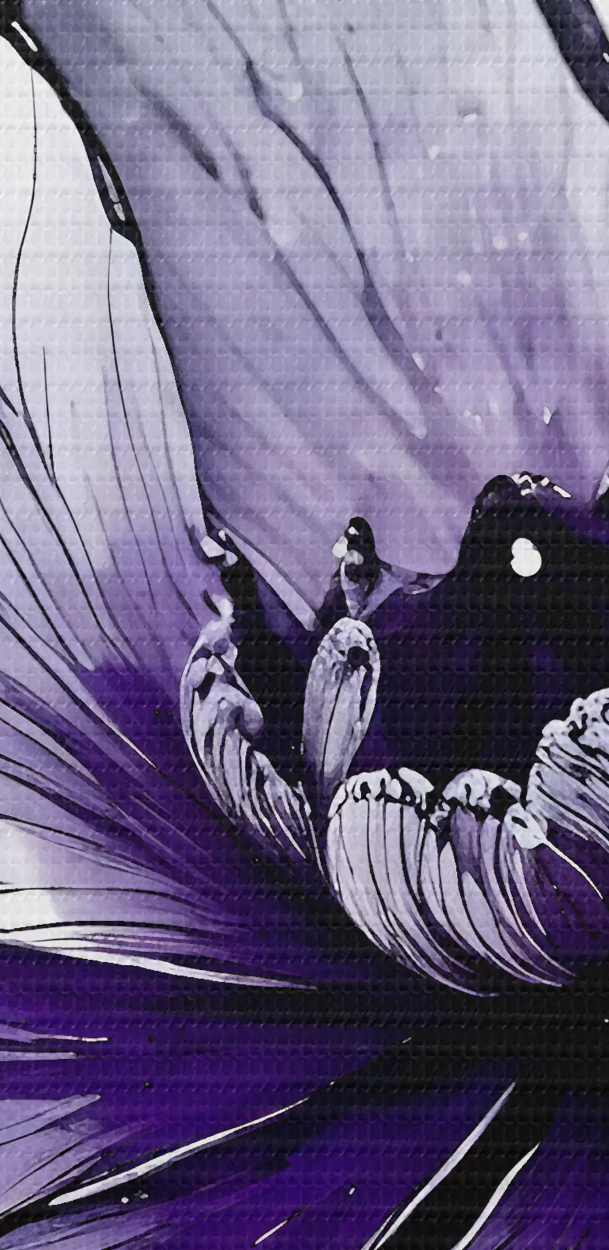 Tablouri O floare mare, violet vibrant, cu petale delicate, complicate, pe un fundal închis s38982