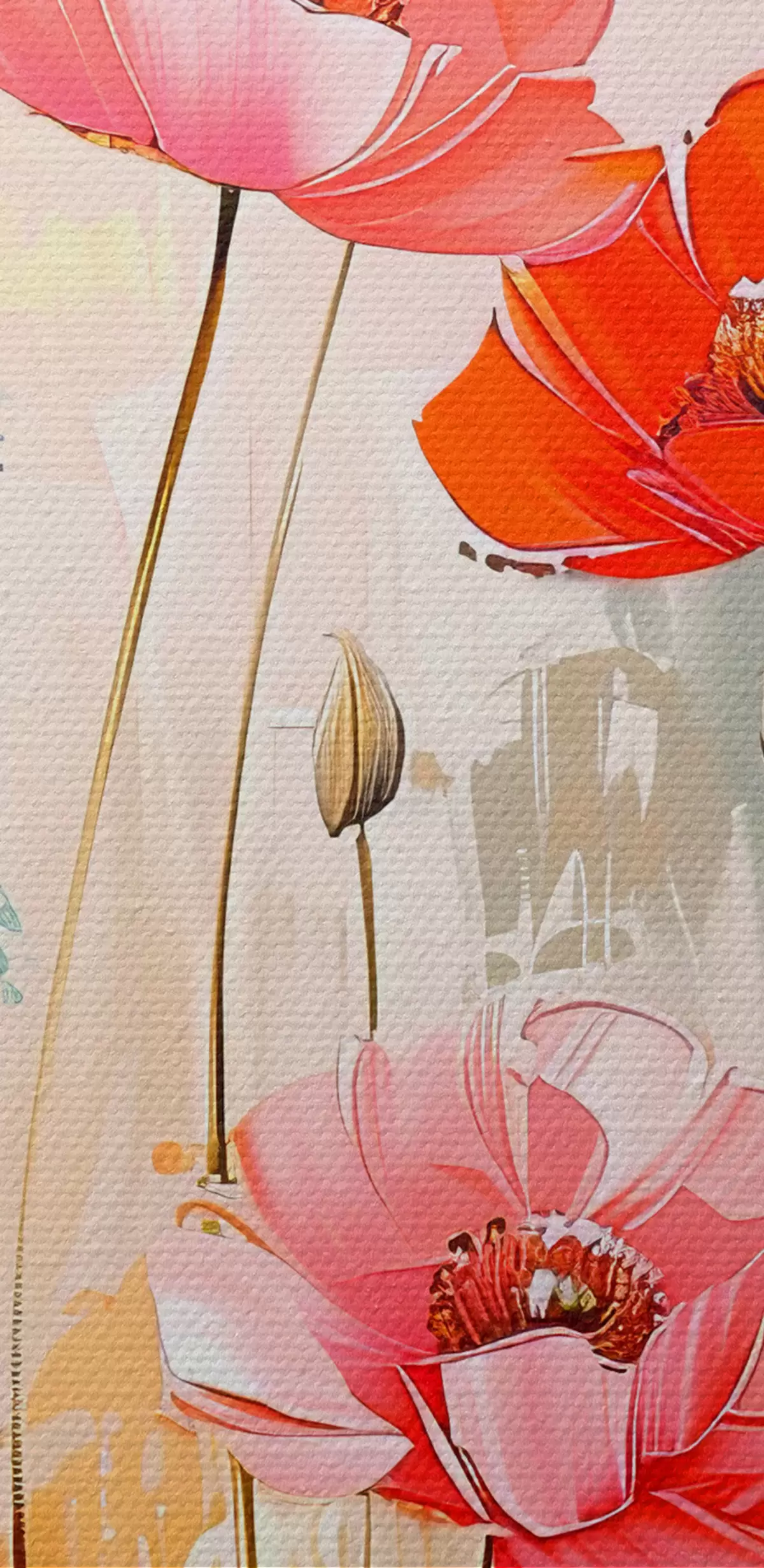 Trei tipuri de materiale sunt disponibile pentru comandă: Economic Canvas - un material dens și durabil pentru imprimarea digitală, identic cu pânza de pictor, suprafață impermeabilă, reproducere realistă a detaliilor, material cu granulație medie. Premium Canvas - textura seamănă cu cea a pânzei unui pictor (fire mici împletite). Reproducere moale, detaliată a imaginii pe o suprafață mată. Eco-Premium - țesătură 100% bumbac de înaltă calitate. Datorită fibrelor naturale de bumbac, materialul este durabil și rezistent la uzură. Reproducere excelentă a culorilor și a detaliilor.