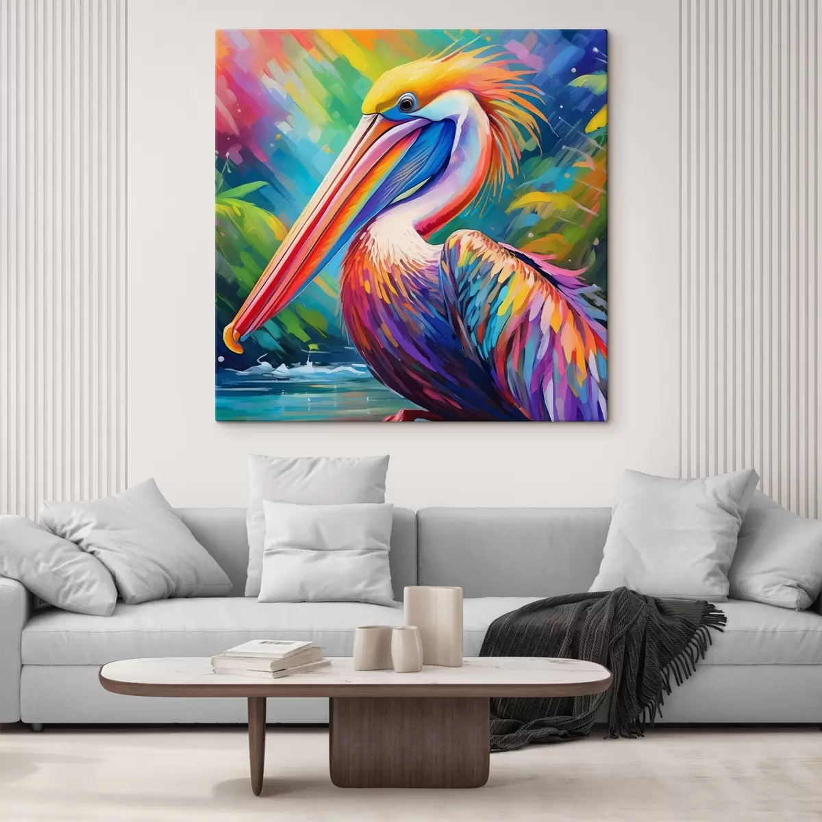 Pictură pe pânză Pelican vibrant pe un fundal colorat Nr s39054
