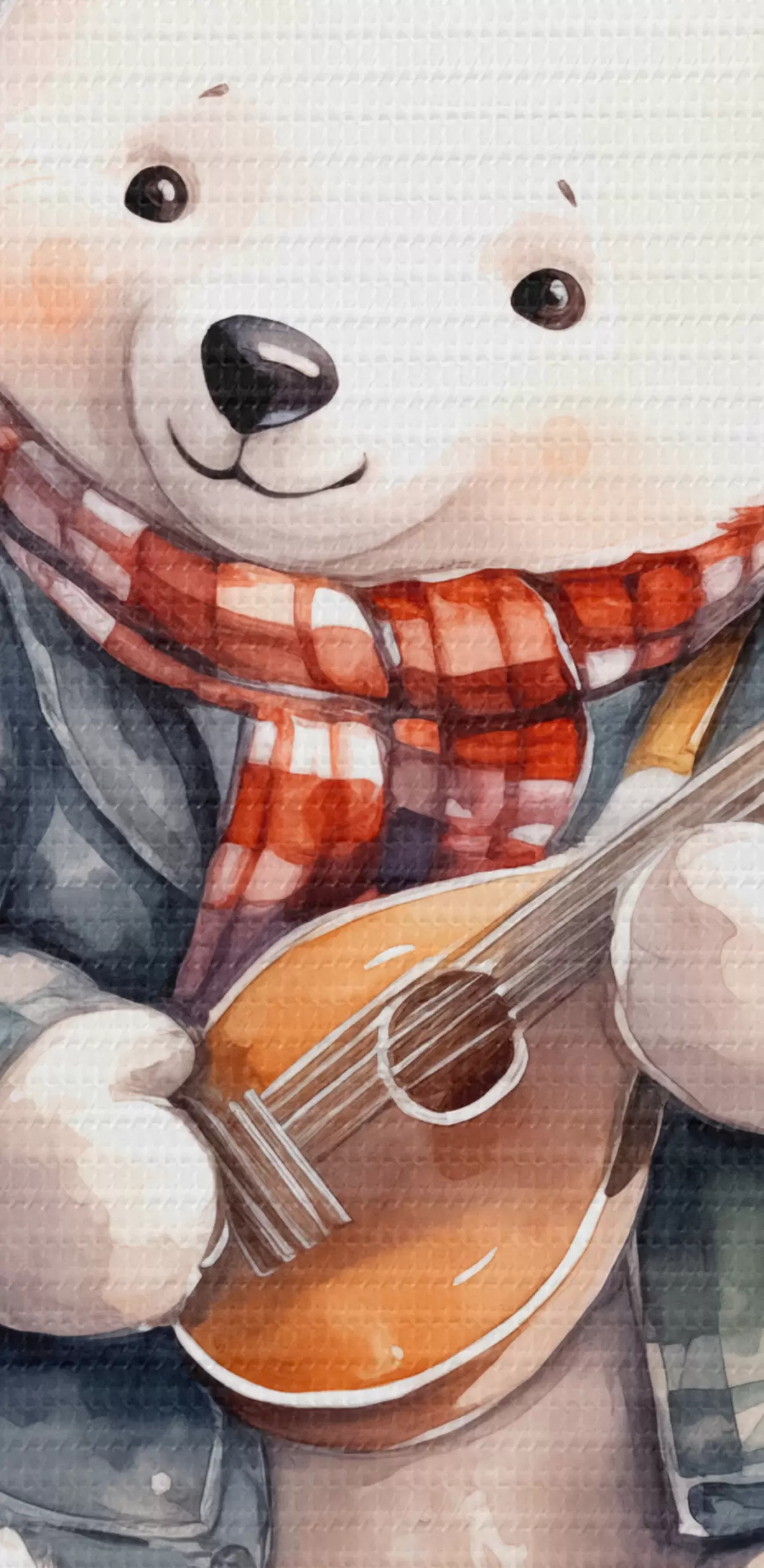 Pictură pe pânză Polar urs muzician într-un costum albastru în carouri și eșarfă roșie joacă chitara copii acuarelă ilustrare Nr s39120