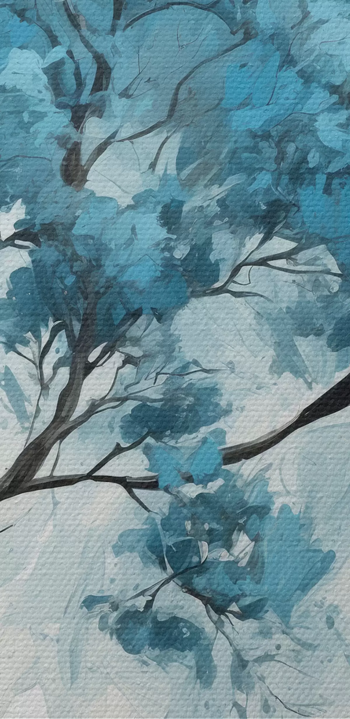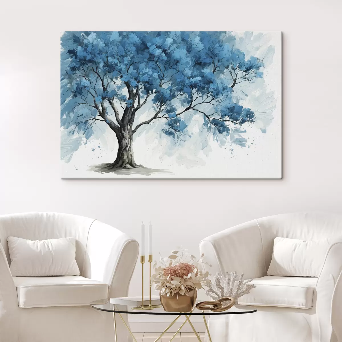 Pictură pe pânză Copac cu frunze albastre pe fundal alb Nr s39153