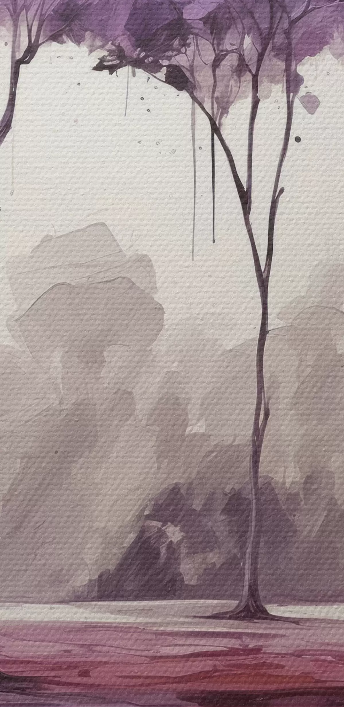 Tablouri Copaci cu frunze violet pe fundal abstract s39155