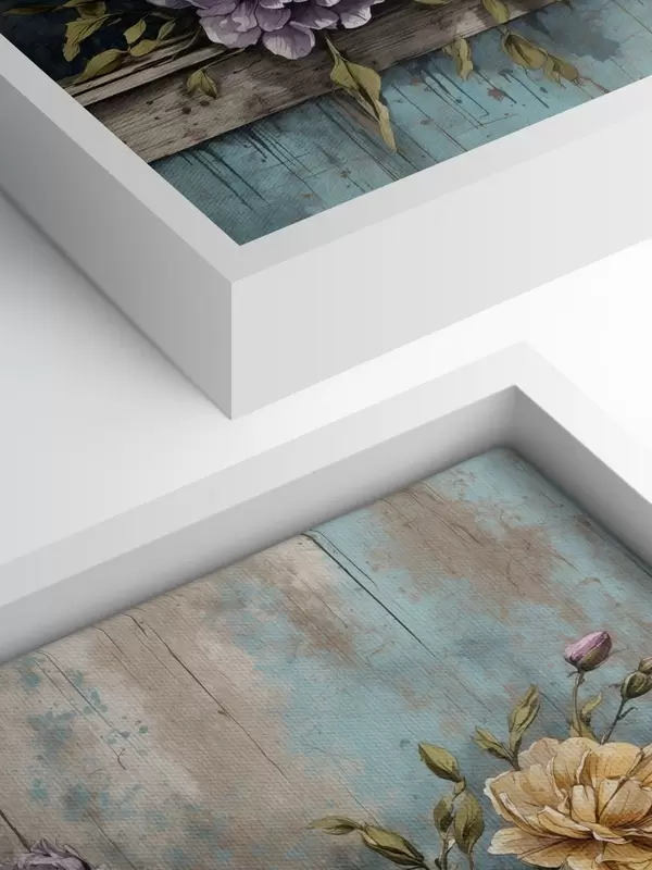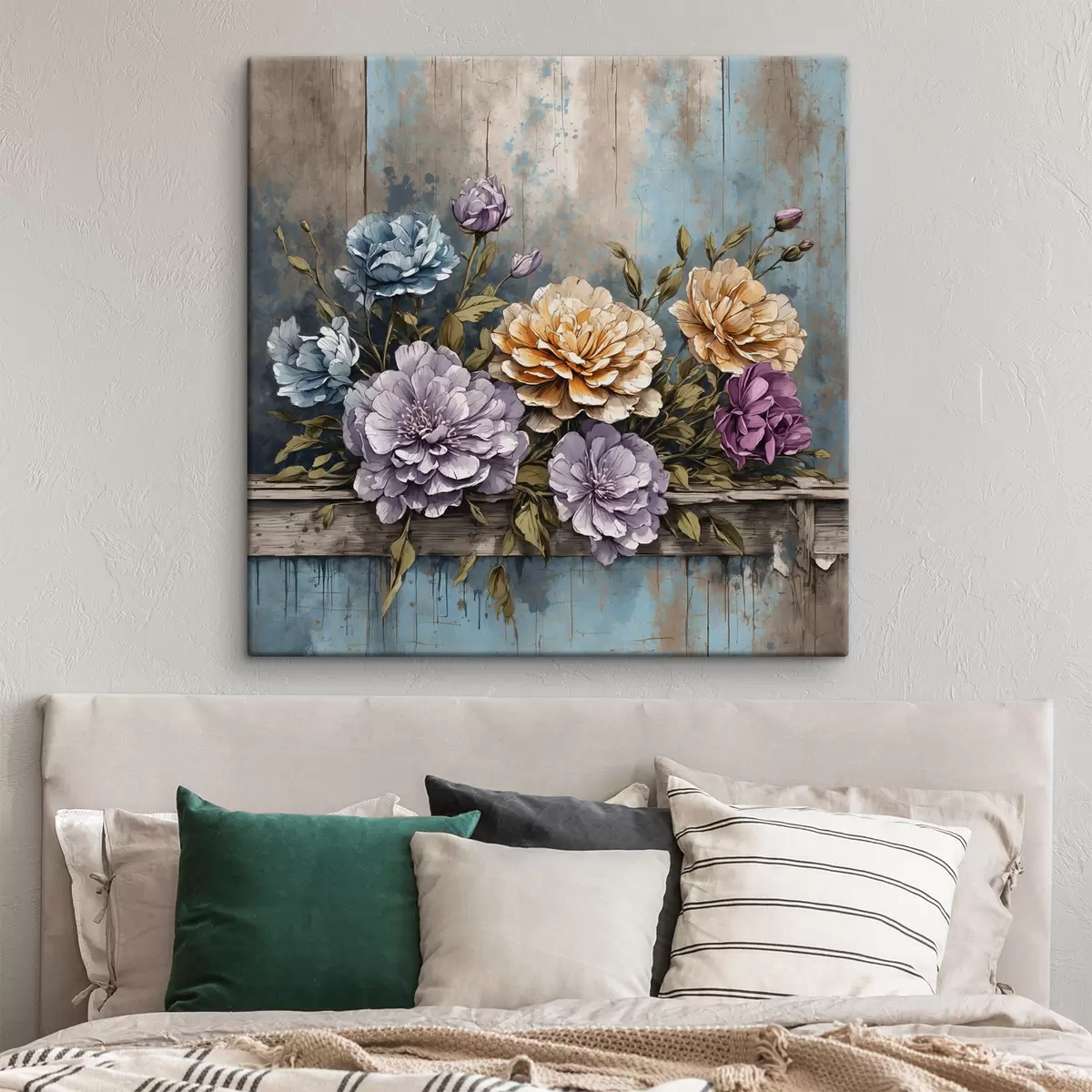 Pictură pe pânză Flori și frunze pe un raft vechi din lemn Nr s39169