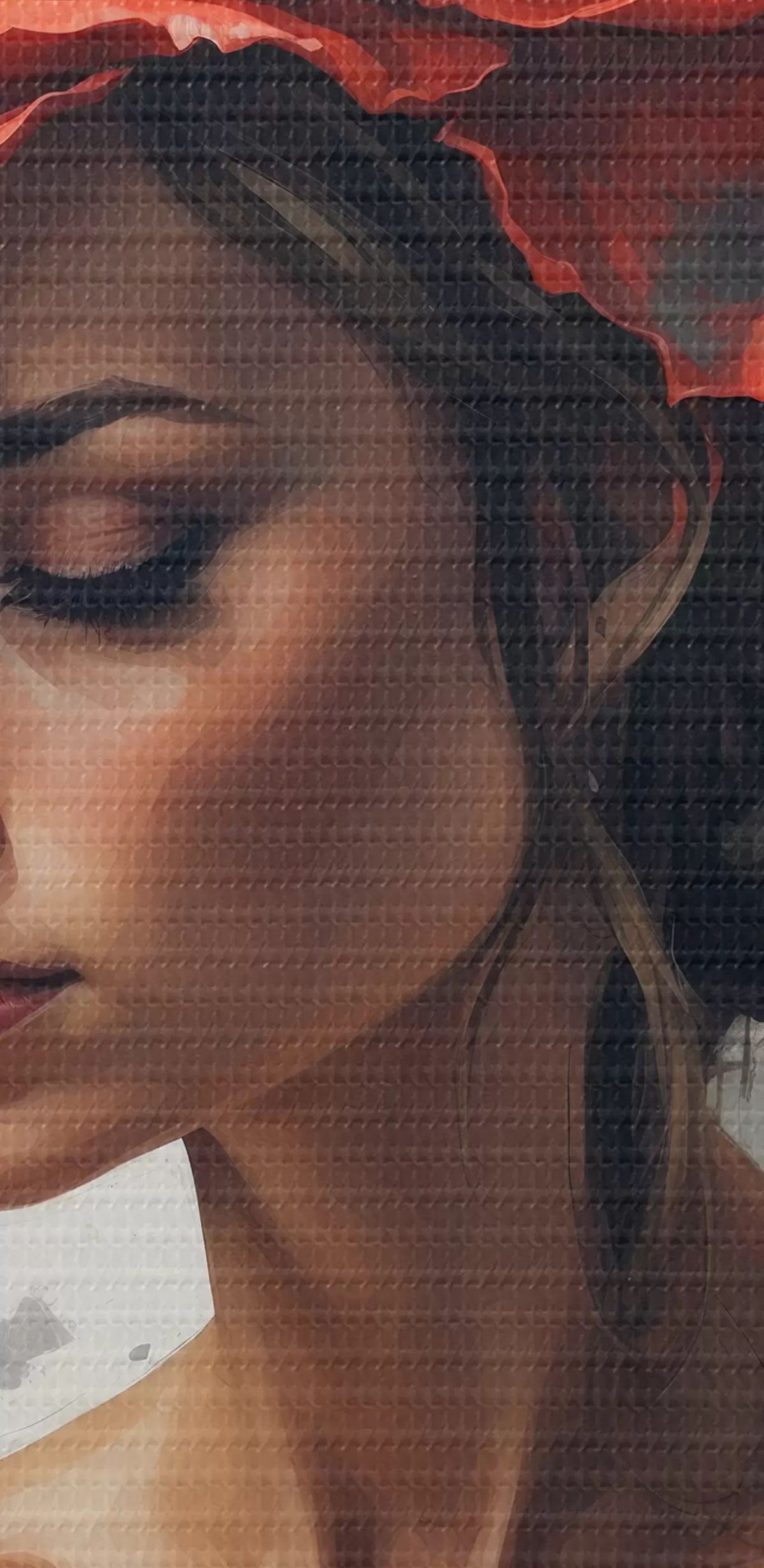 Trei tipuri de materiale sunt disponibile pentru comandă: Economic Canvas - un material dens și durabil pentru imprimarea digitală, identic cu pânza de pictor, suprafață impermeabilă, reproducere realistă a detaliilor, material cu granulație medie. Premium Canvas - textura seamănă cu cea a pânzei unui pictor (fire mici împletite). Reproducere moale, detaliată a imaginii pe o suprafață mată. Eco-Premium - țesătură 100% bumbac de înaltă calitate. Datorită fibrelor naturale de bumbac, materialul este durabil și rezistent la uzură. Reproducere excelentă a culorilor și a detaliilor.