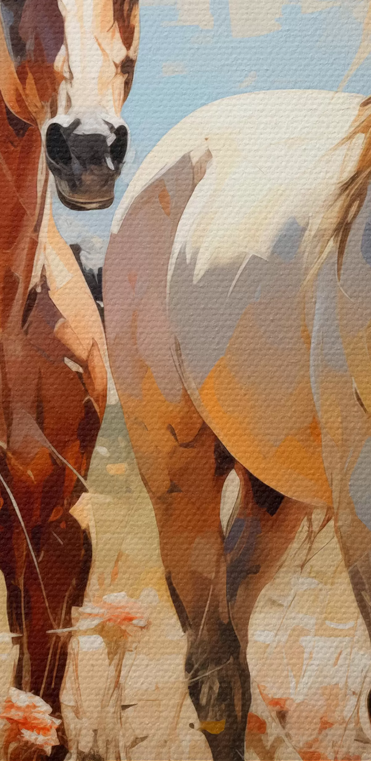 Pictură pe pânză Cai albi și maro pasc într-o pajiște printre flori sălbatice pictură în ulei artă abstractă Nr s39187