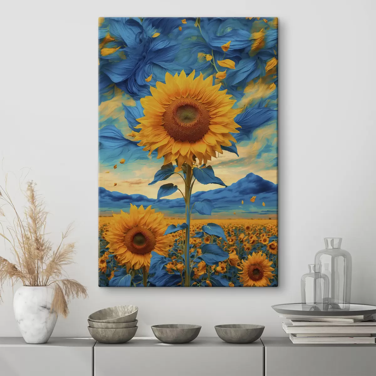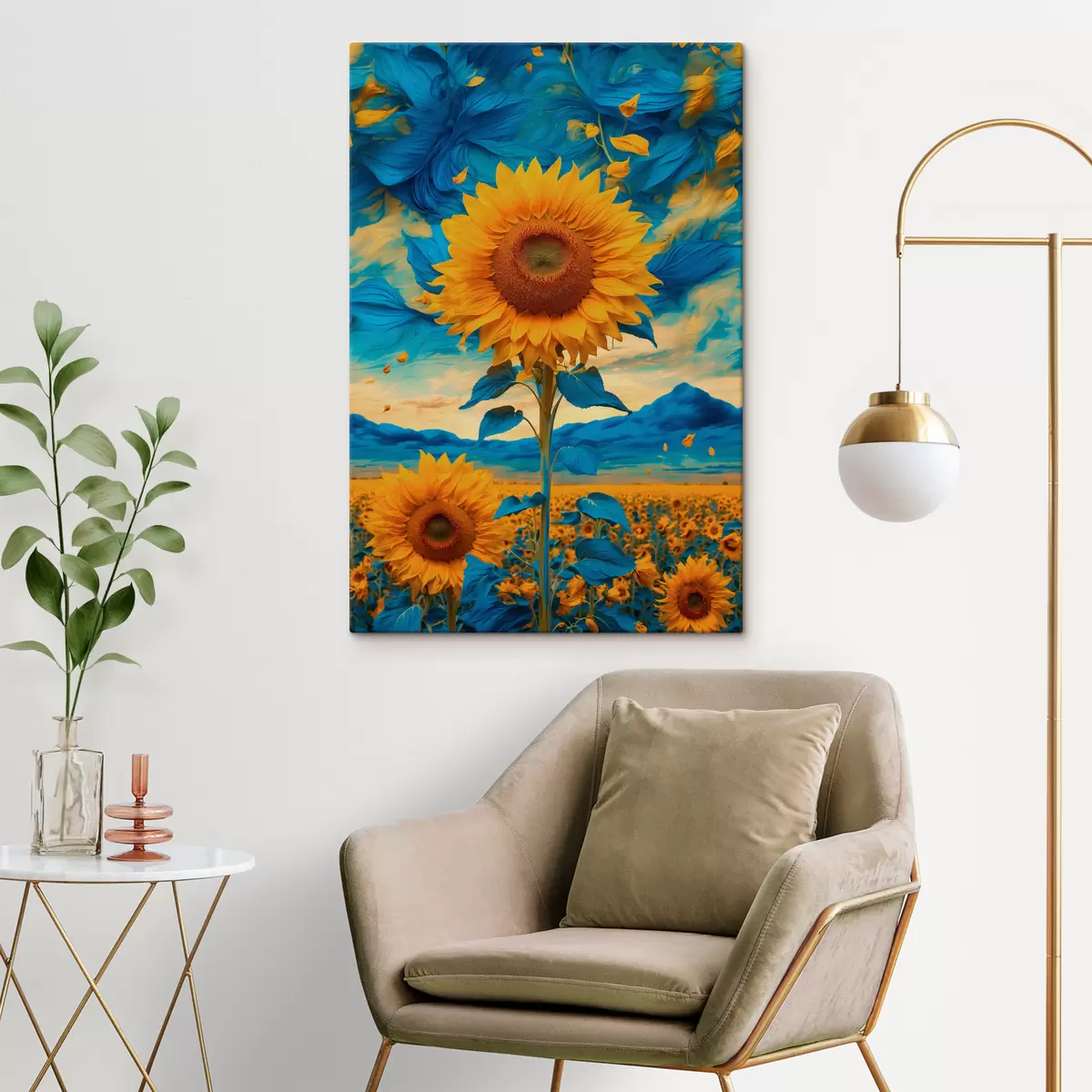 Tablouri Câmp de floarea soarelui peste cer abstract s39367