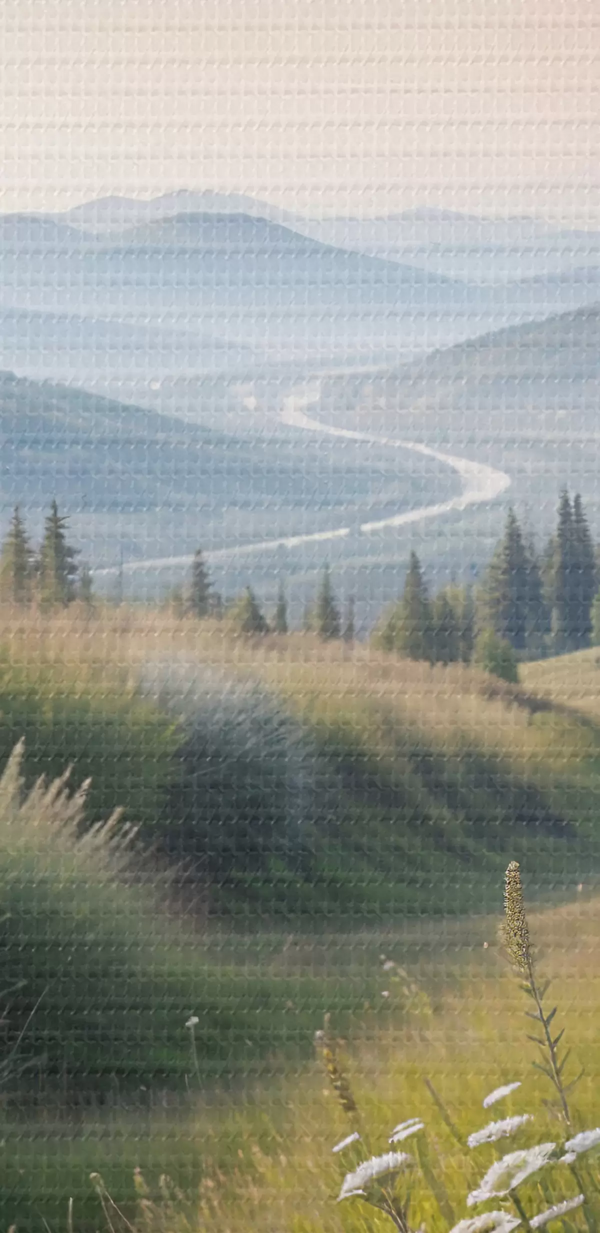 Tablouri Peisaj montan cu o pajiște cu iarbă în prim-plan plină de flori sălbatice colorate s39382