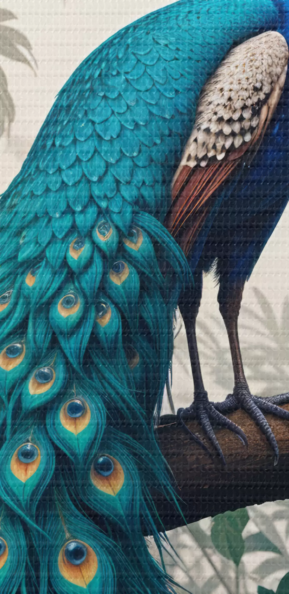 Pictură pe pânză Un păun albastru vibrant cocoțat pe o ramură de copac într-o pădure tropicală luxuriantă Nr s39401